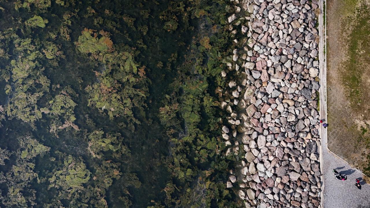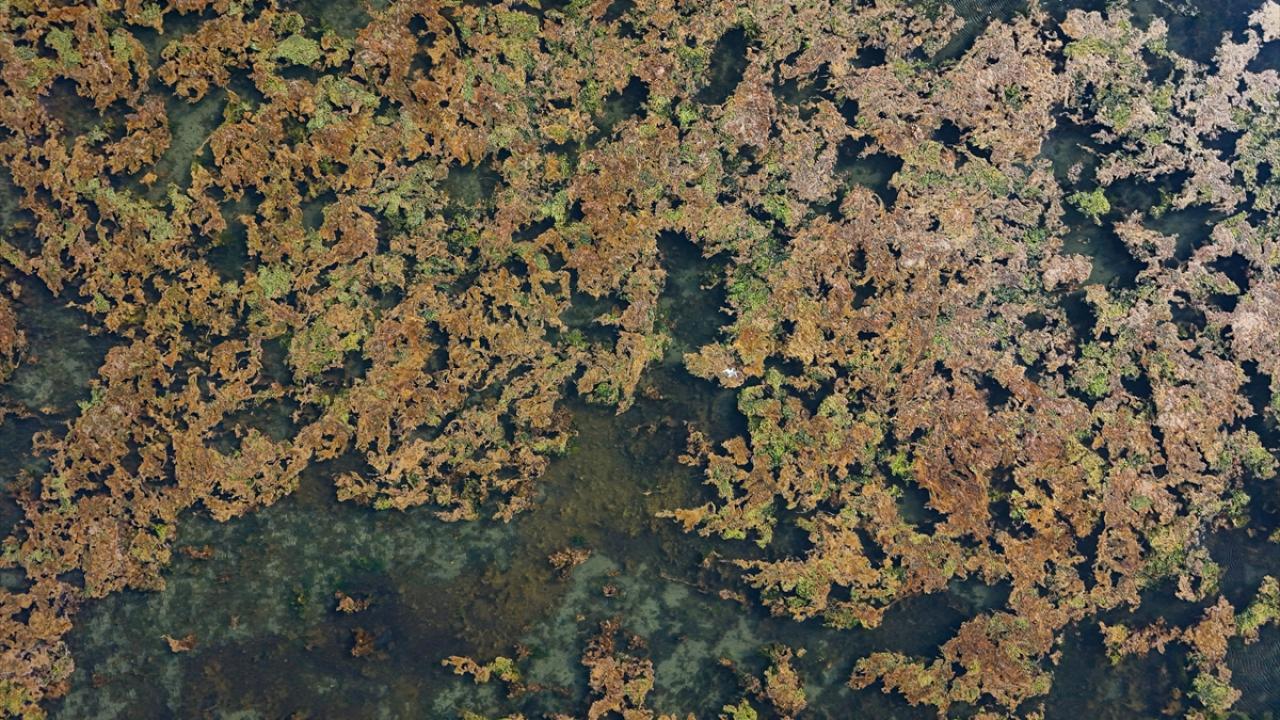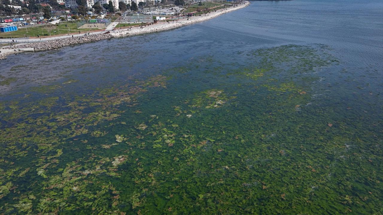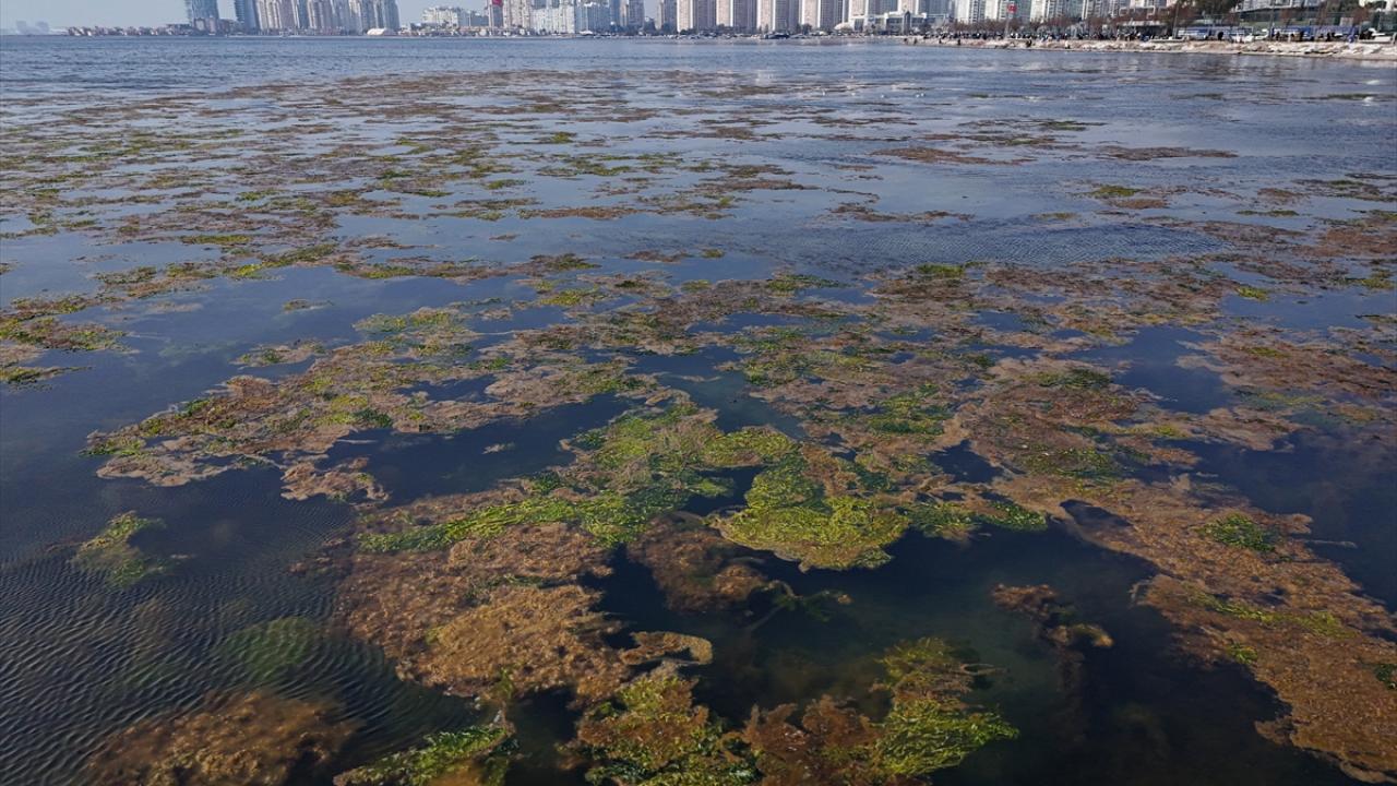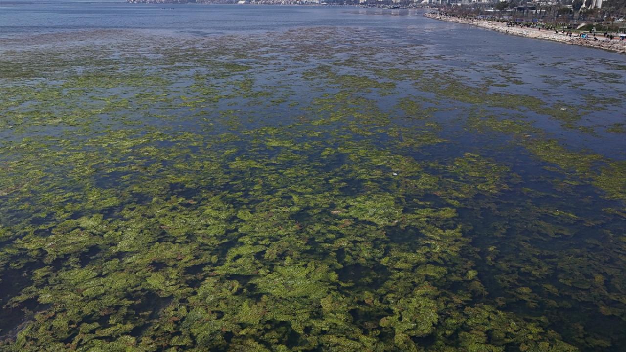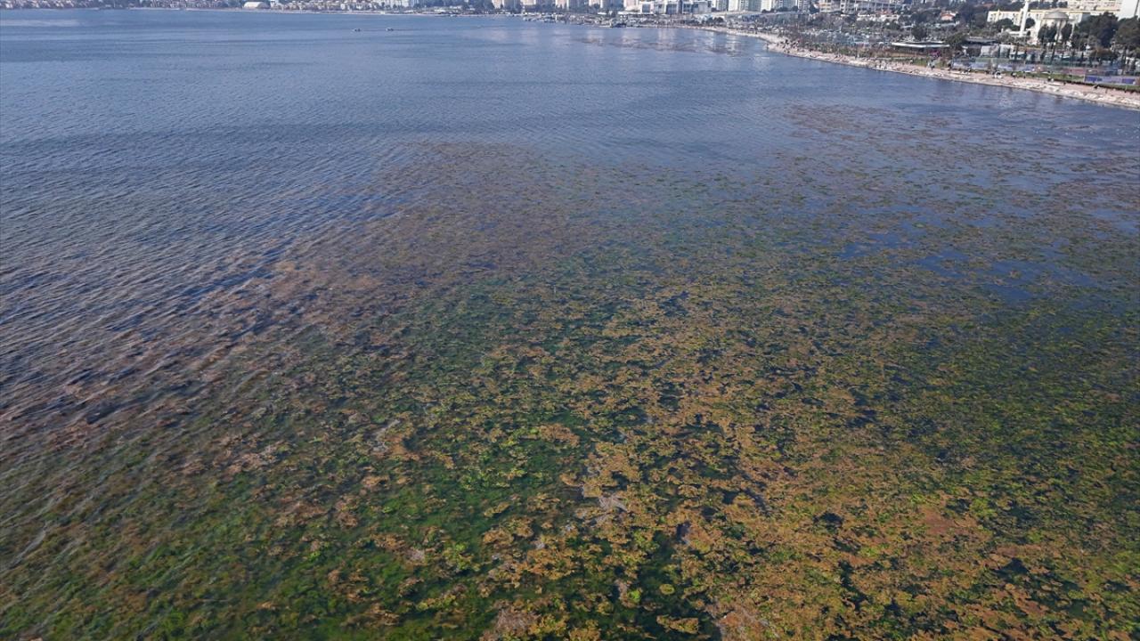 İzmir Körfezi'nde kıyıya yakın noktalarda yosun tabakası oluştu