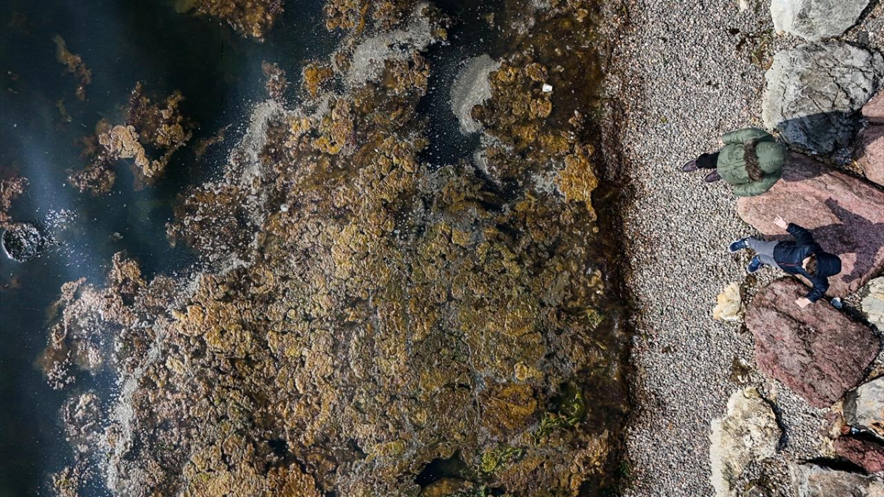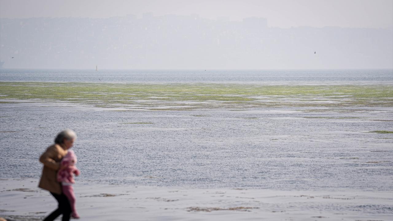 Yosunlar, Bostanlı sahilinde kıyıya yakın bazı noktalarda denizin yüzeyini kapladı.