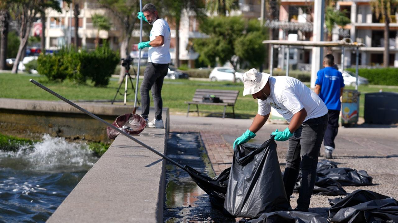 İzmir Körfezi’nde 9 Eylül’de de deniz suyu renginin yeşil ve kahverengiye döndüğü Karşıyaka ilçesi Aksoy Mahallesi civarında çok sayıda ölü balığın deniz yüzeyine çıktığı görüldü.