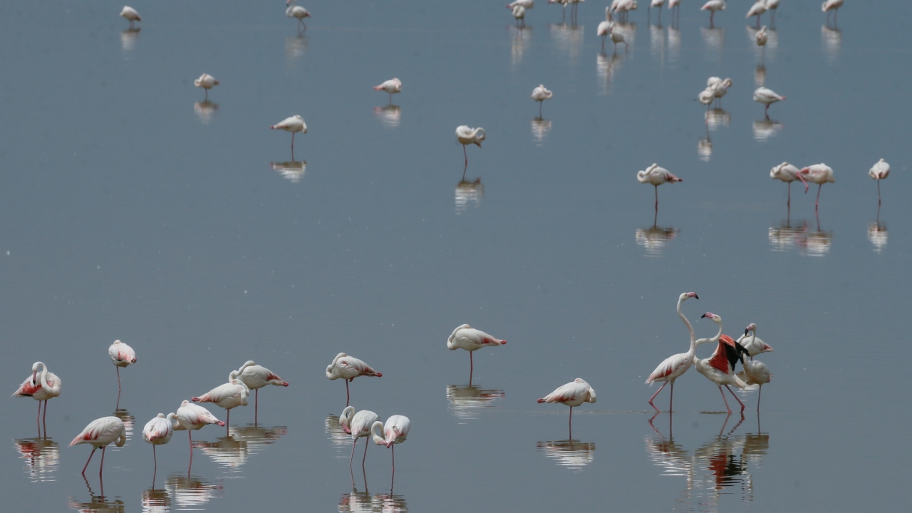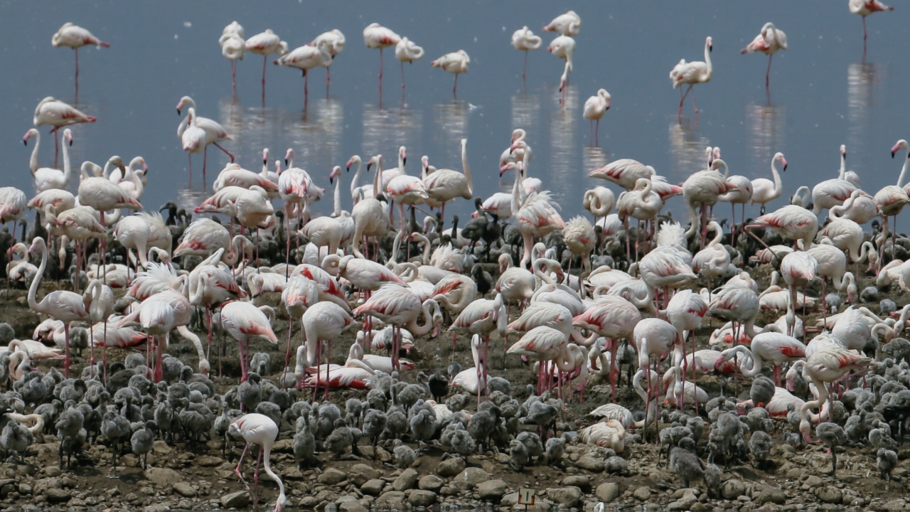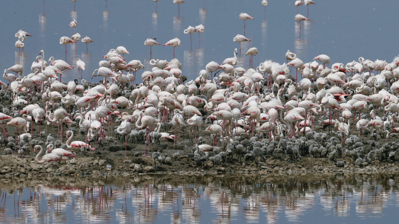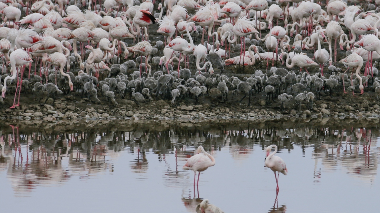 Dünyanın önde gelen yapay üreme adalarından birine sahip İzmir Kuş Cenneti'nde, yumurtalarının kabuklarını kıran 18 bin flamingo, kanat çırpmaya hazırlanıyor.