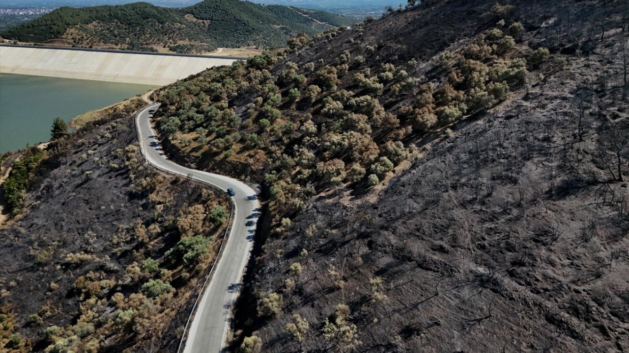 İzmir Ödemiş orman yangınında zarar gören alanlar havadan görüntülendi
