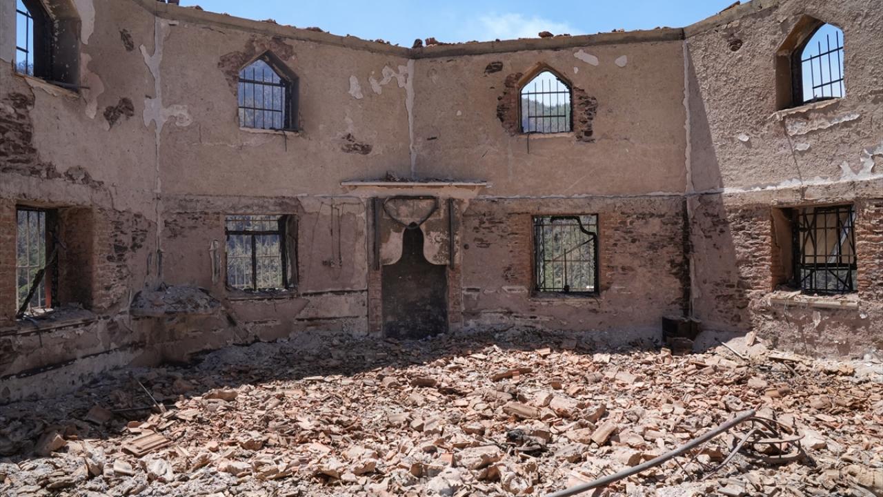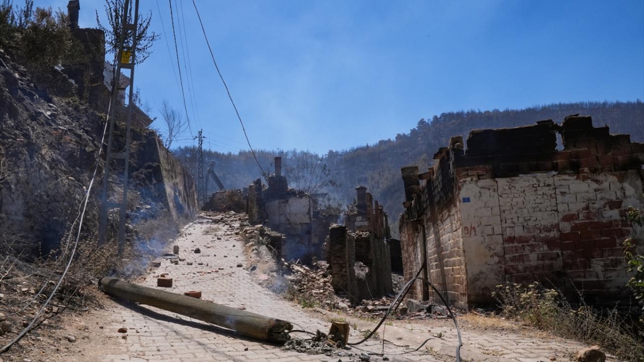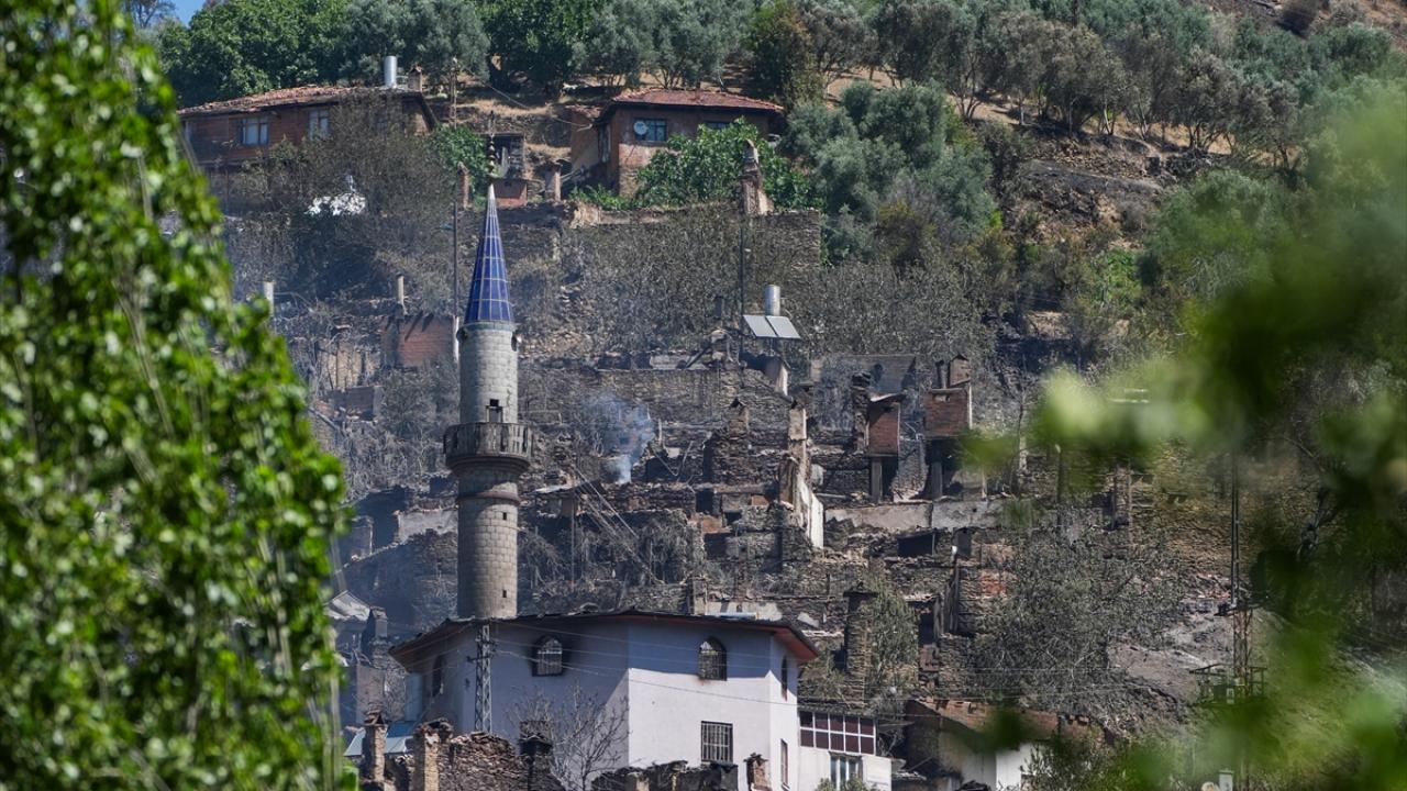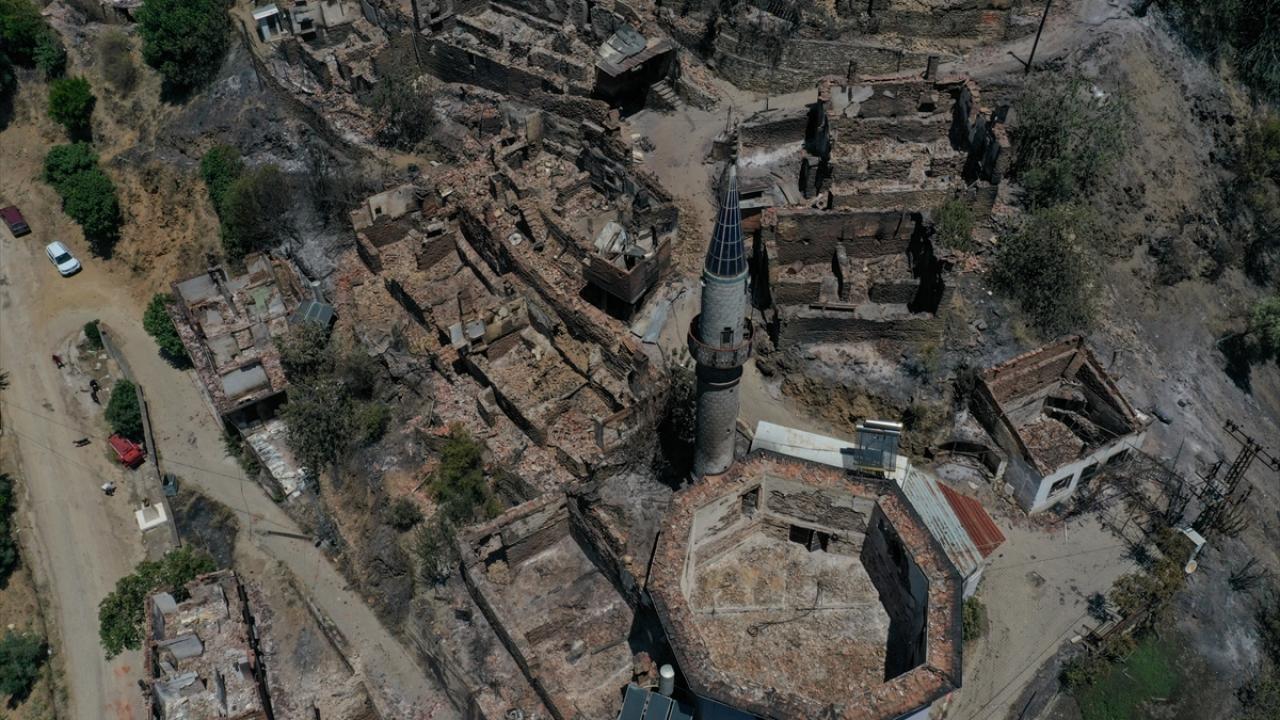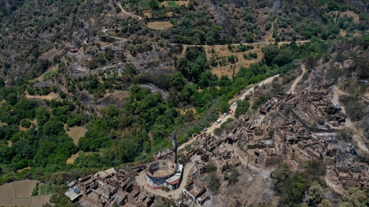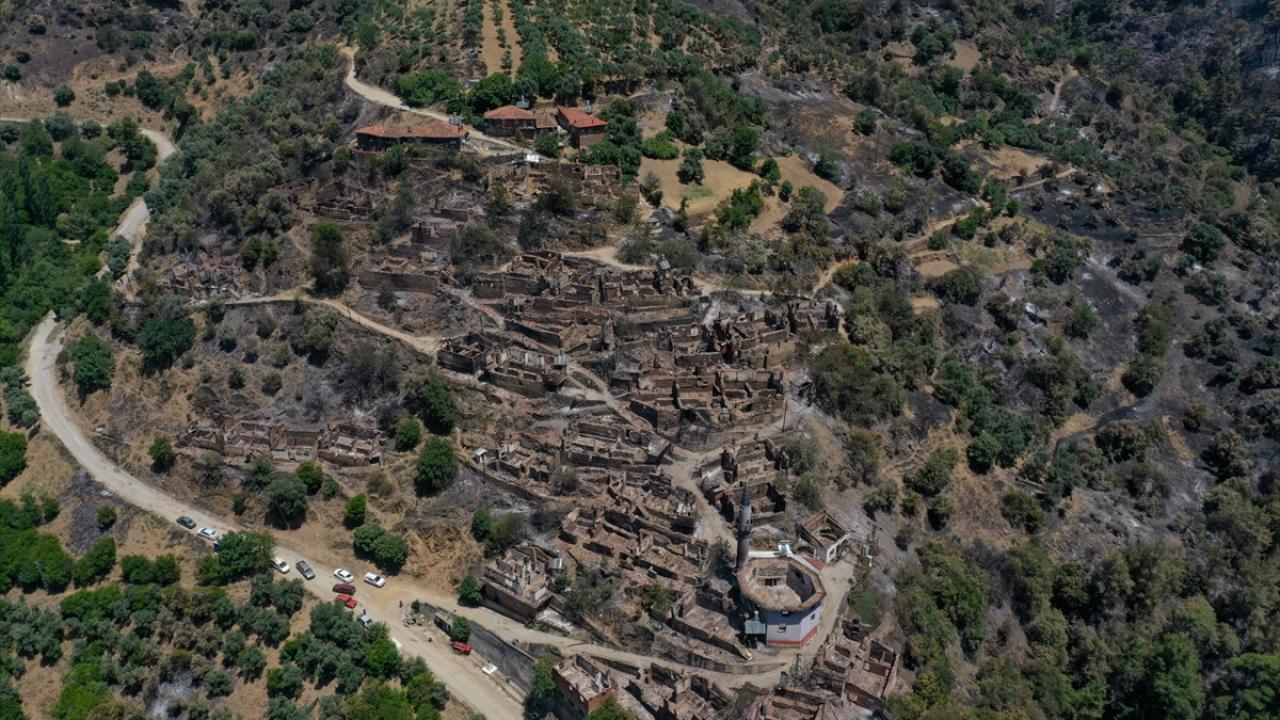 Yangın nedeniyle adeta "hayalet köy"e dönüşen bölge havadan görüntülendi.