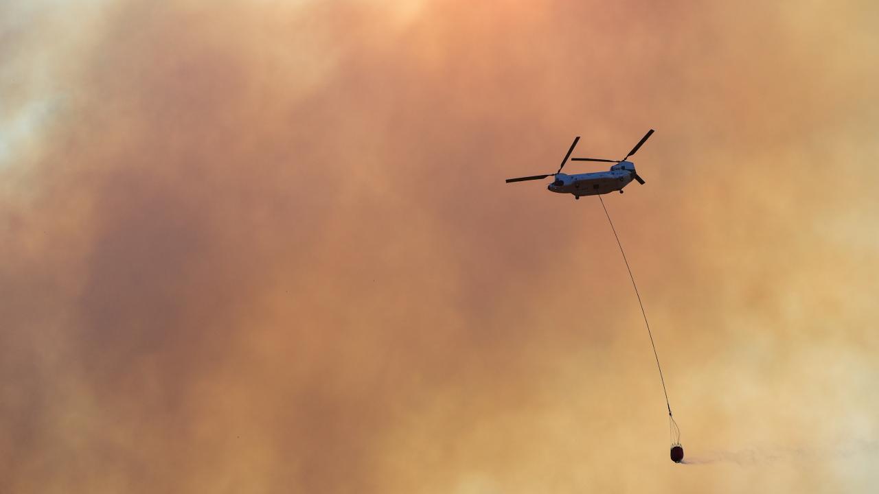 Havanın aydınlanmasıyla birlikte ekipler yangına havadan da müdahale etmeye başladı.