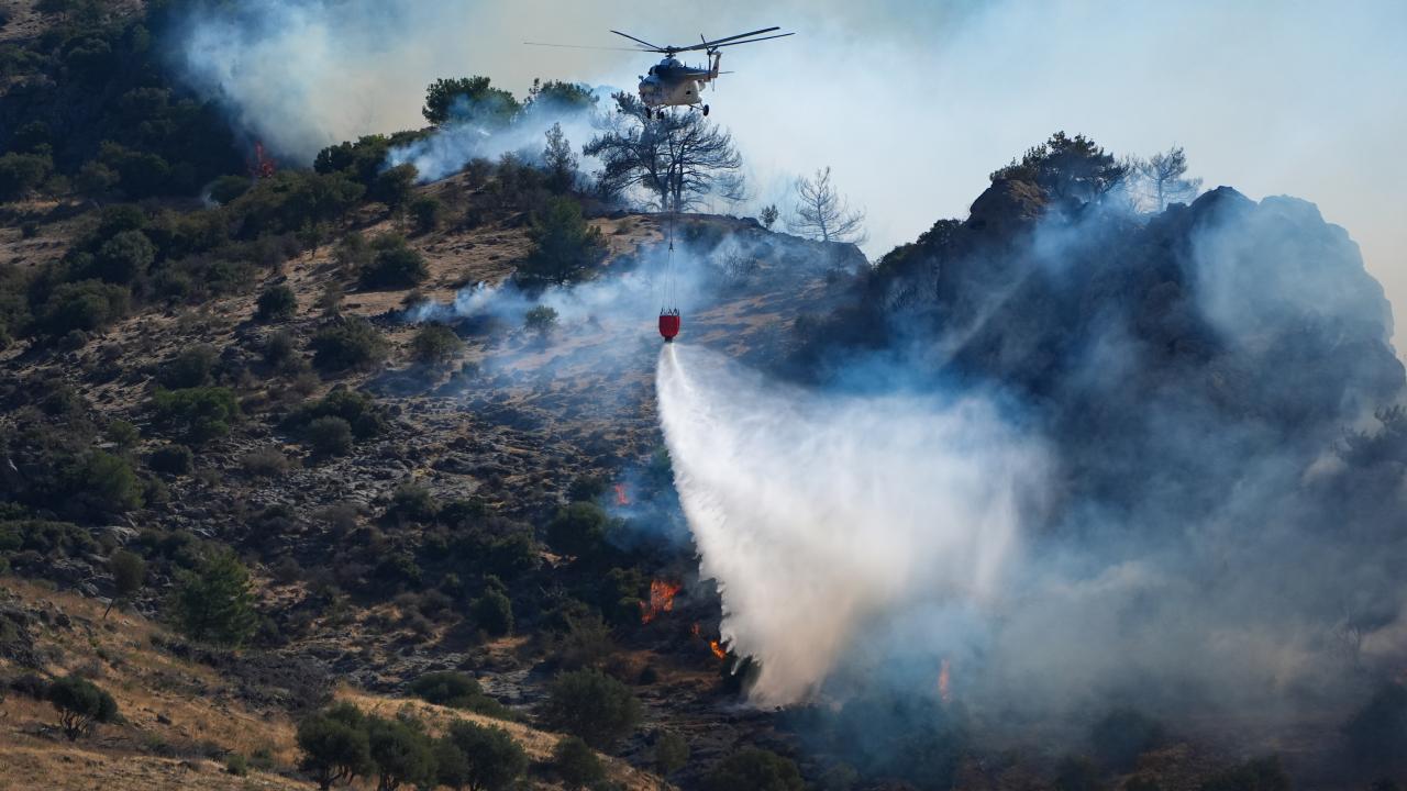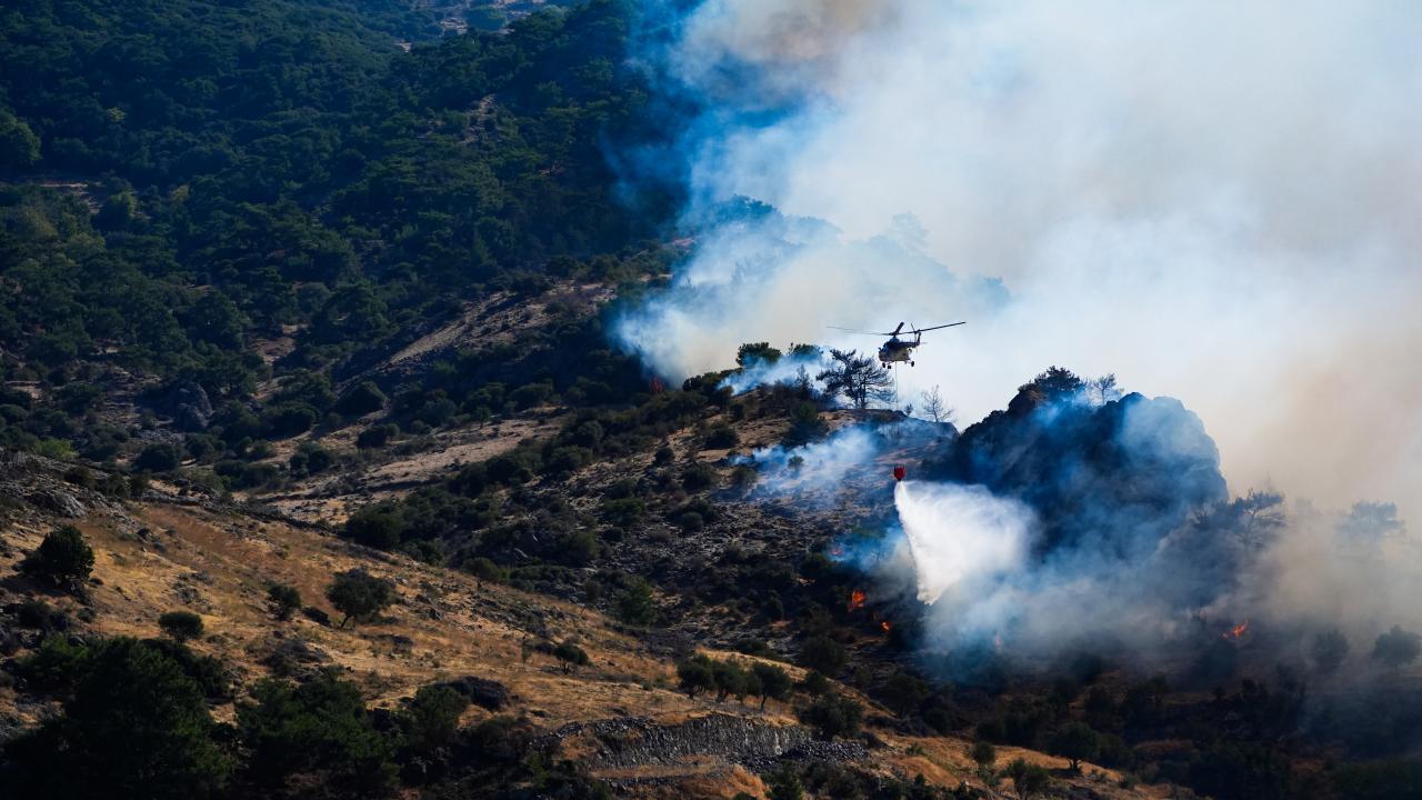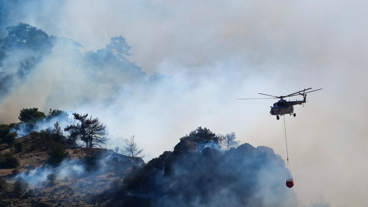 Ekipler, havadan ve karadan yangını kontrol altına almak için yoğun mücadele veriyor.