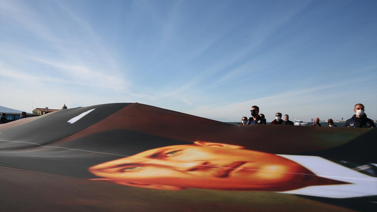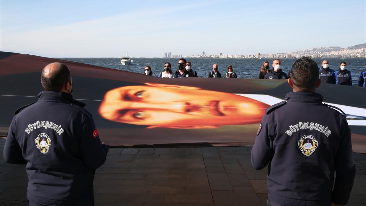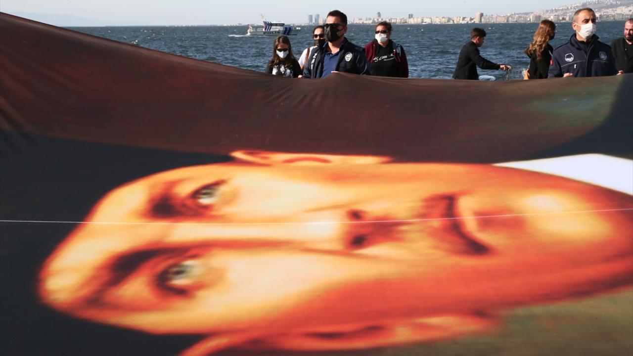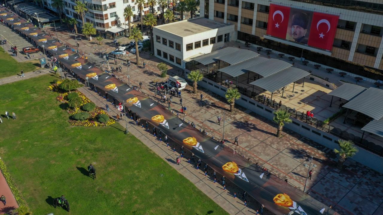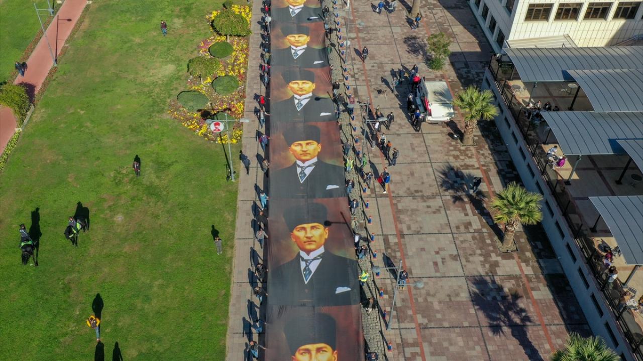 İzmir'de, Büyük Önder Mustafa Kemal Atatürk'ün ebediyete irtihalinin 83. yılı dolayısıyla düzenlenen "Ata'ya Saygı Yürüyüşü"nde 350 metre uzunluğunda Atatürk posteri taşındı.