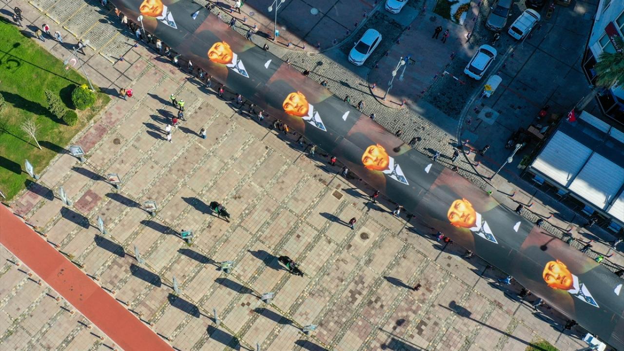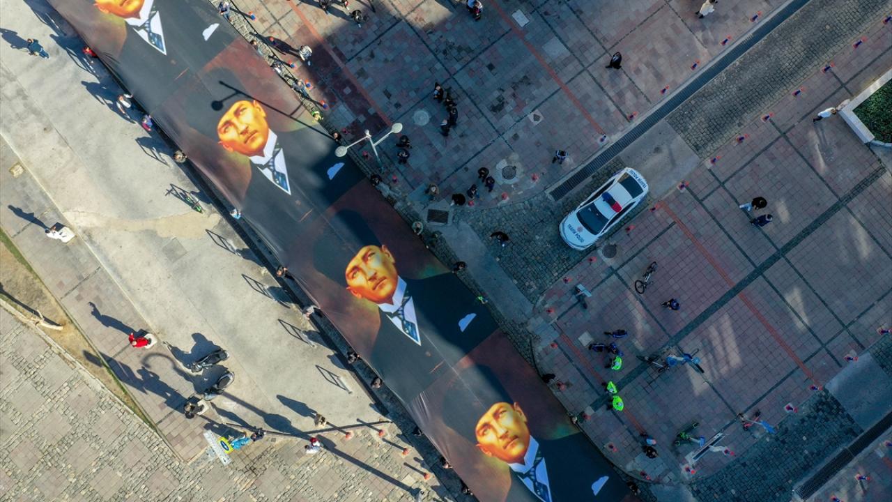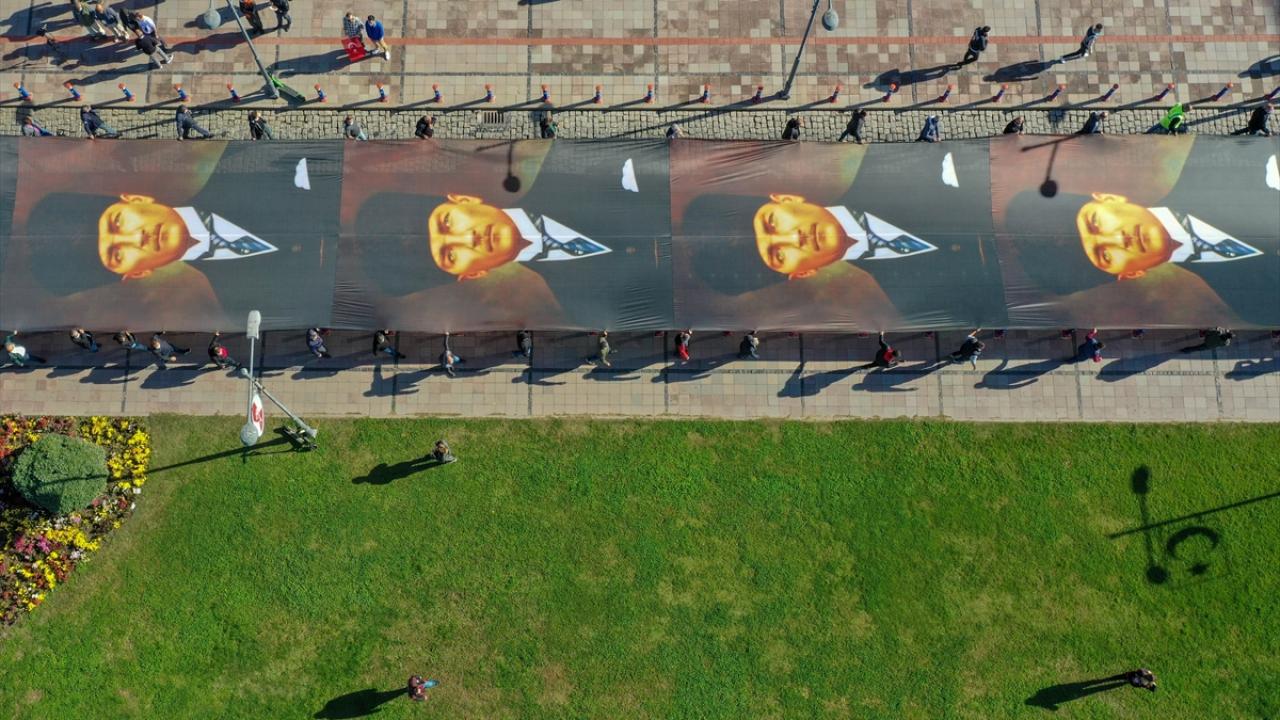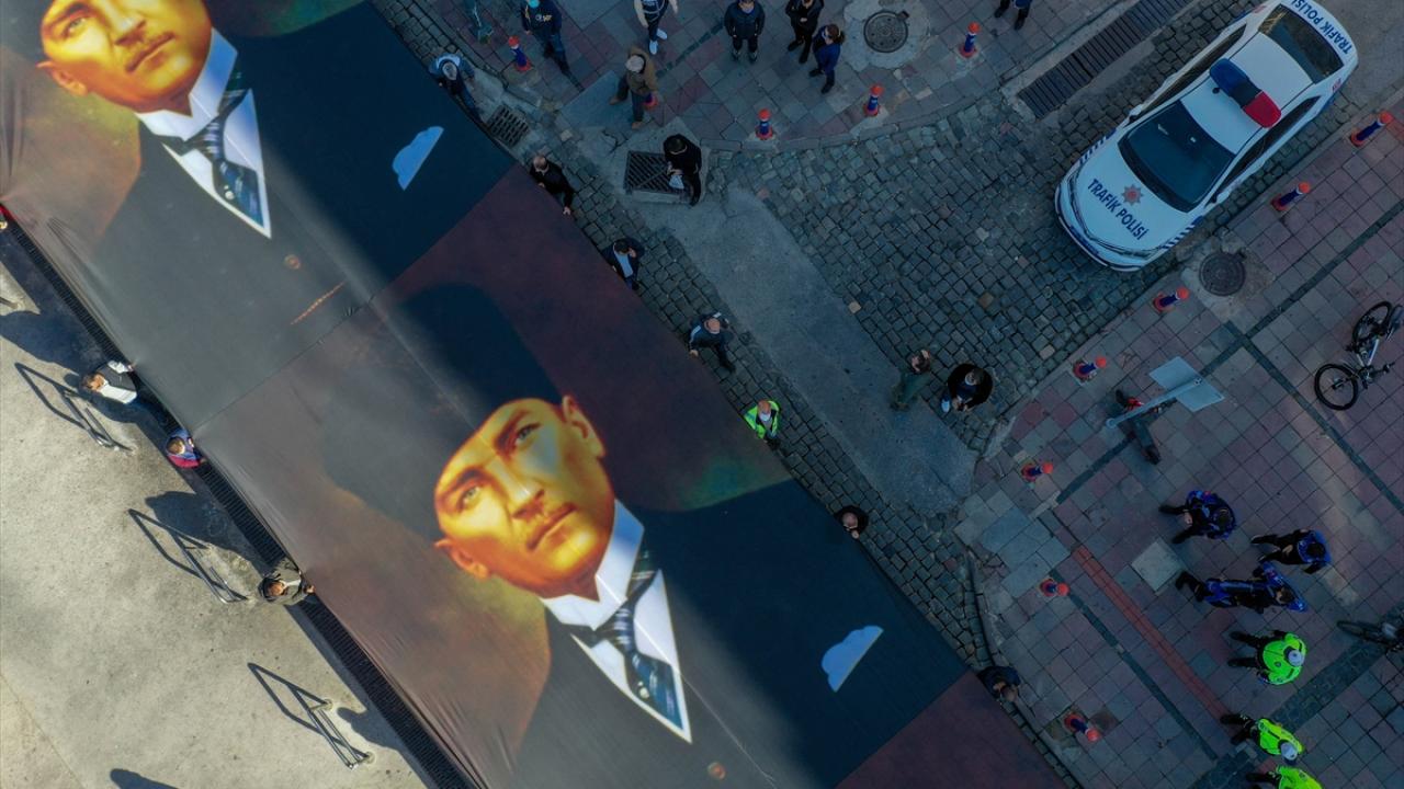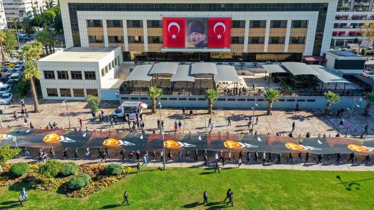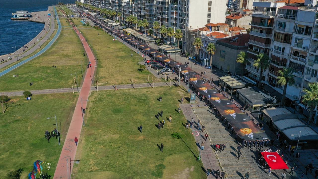 İzmir'de 350 metre uzunluğunda Atatürk posteri taşındı