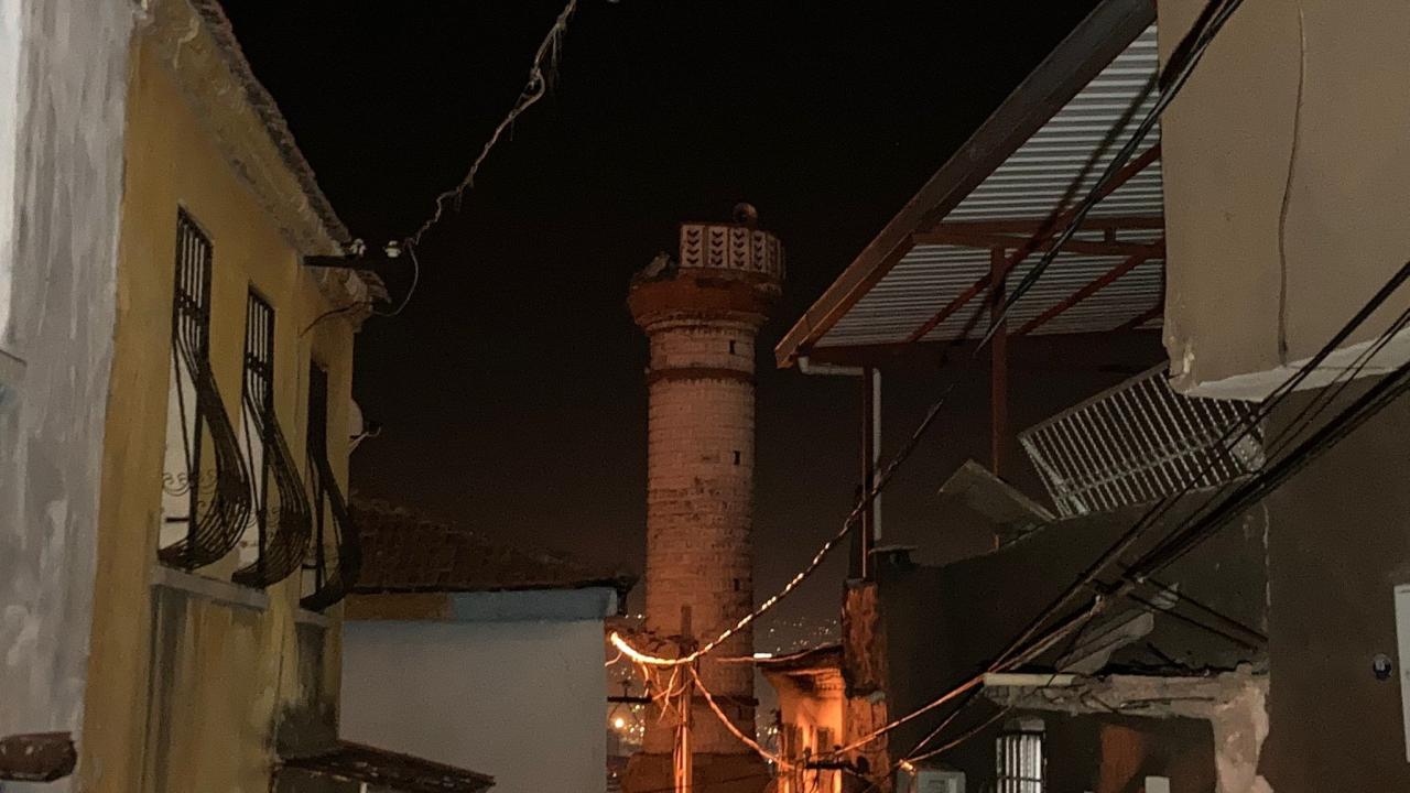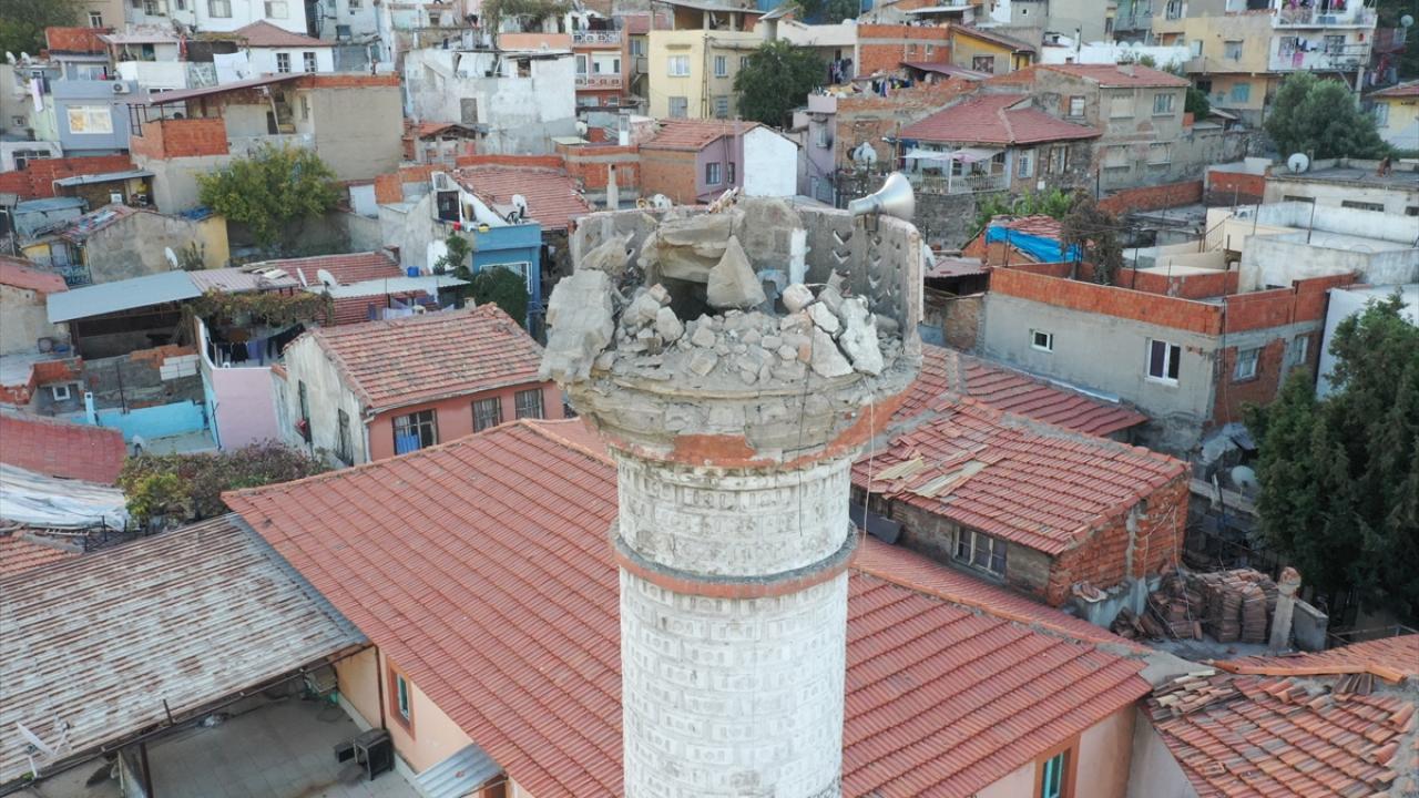 Depremde Konak ilçesine bağlı Kubilay Mahallesi`ndeki Selahattin Oğlu Camii`nin minaresi yıkıldı.