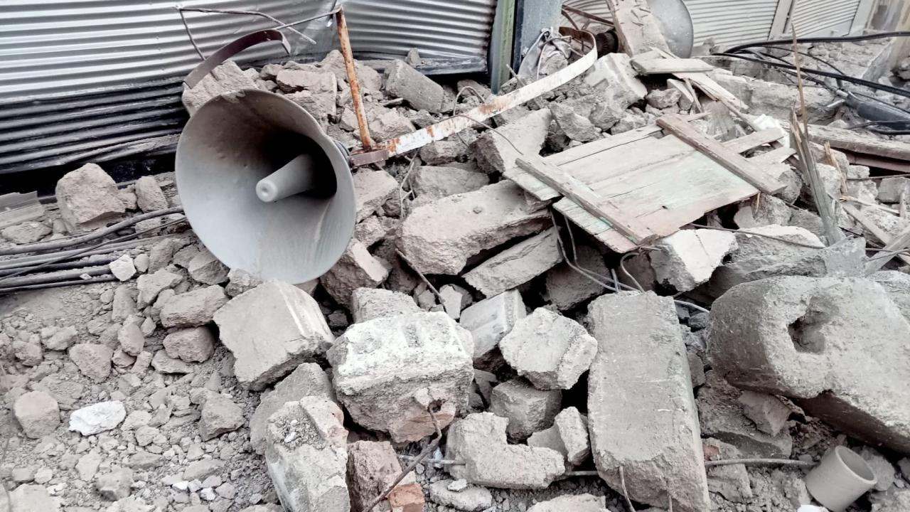 Bakan Soylu, beraberindeki heyetle depremde minaresi yıkılan Selahattin Oğlu Camii`nde basın mensuplarına açıklama yaptı.