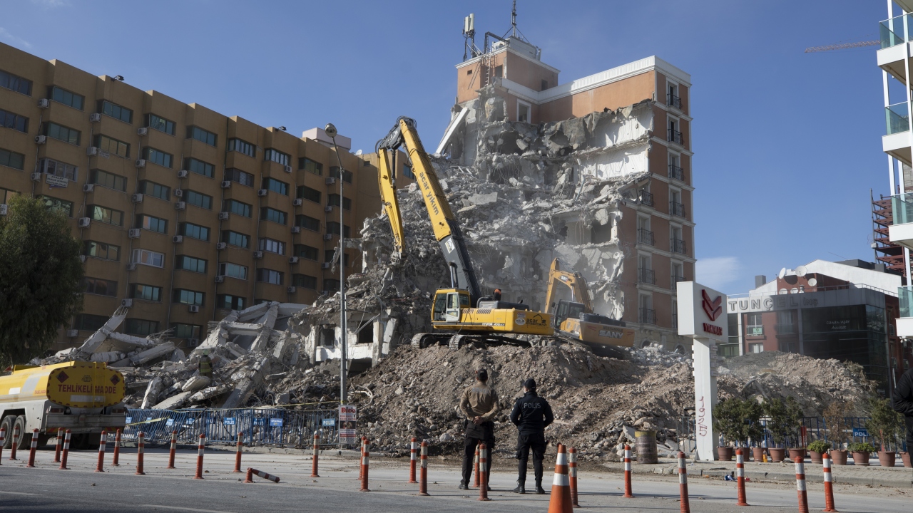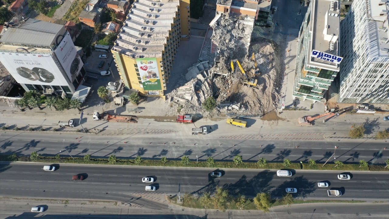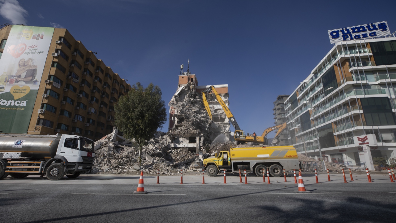 Kentte özellikle Bayraklı ilçesindeki binalarda hasara neden olan depremin ardından Çevre ve Şehircilik Bakanlığı ekiplerinin tespiti sonrası ağır hasarlı olduğu belirlenen binaların yıkımı devam ediyor.