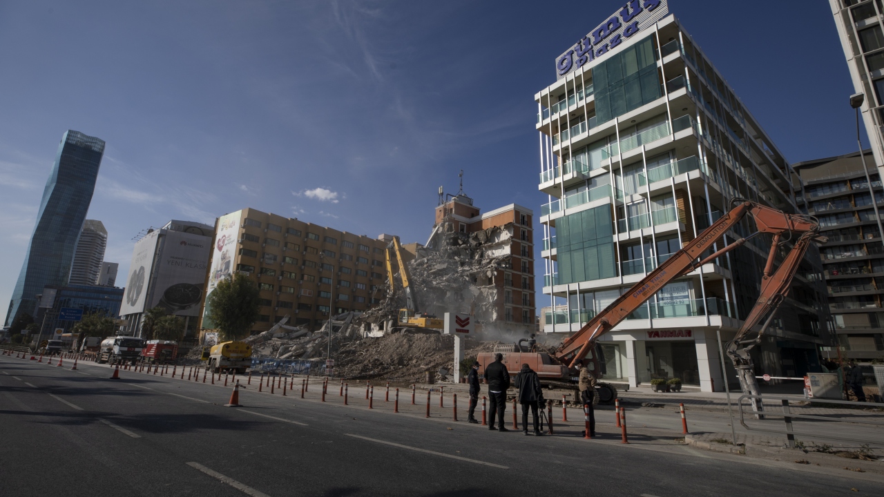 Bu kapsamda Ankara Caddesi üzerindeki 10 katlı bir iş merkezinde ekipler tarafından kontrollü yıkım yapıldı.