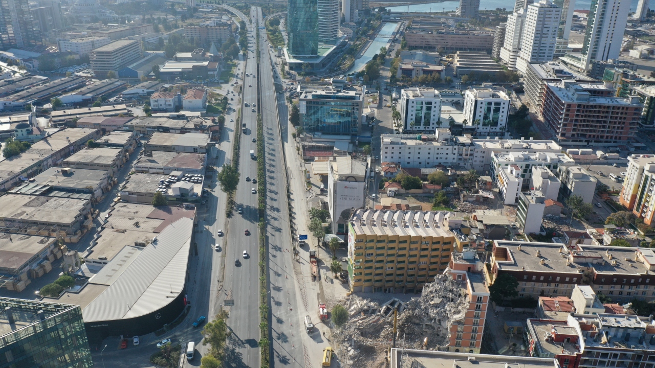İzmir'de 30 Ekim'de meydana gelen 6.6 büyüklüğündeki depremde ağır hasar gören binaların yıkımı nedeniyle şehir içi ulaşımın yoğun olarak sağlandığı Ankara Caddesi'nin bir bölümünde trafik akışı durduruldu.