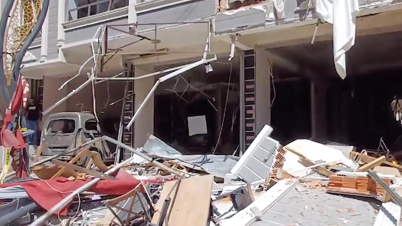 Polis ekipleri, patlamanın yaşandığı lokanta önünde geniş güvenlik önlemi aldı.