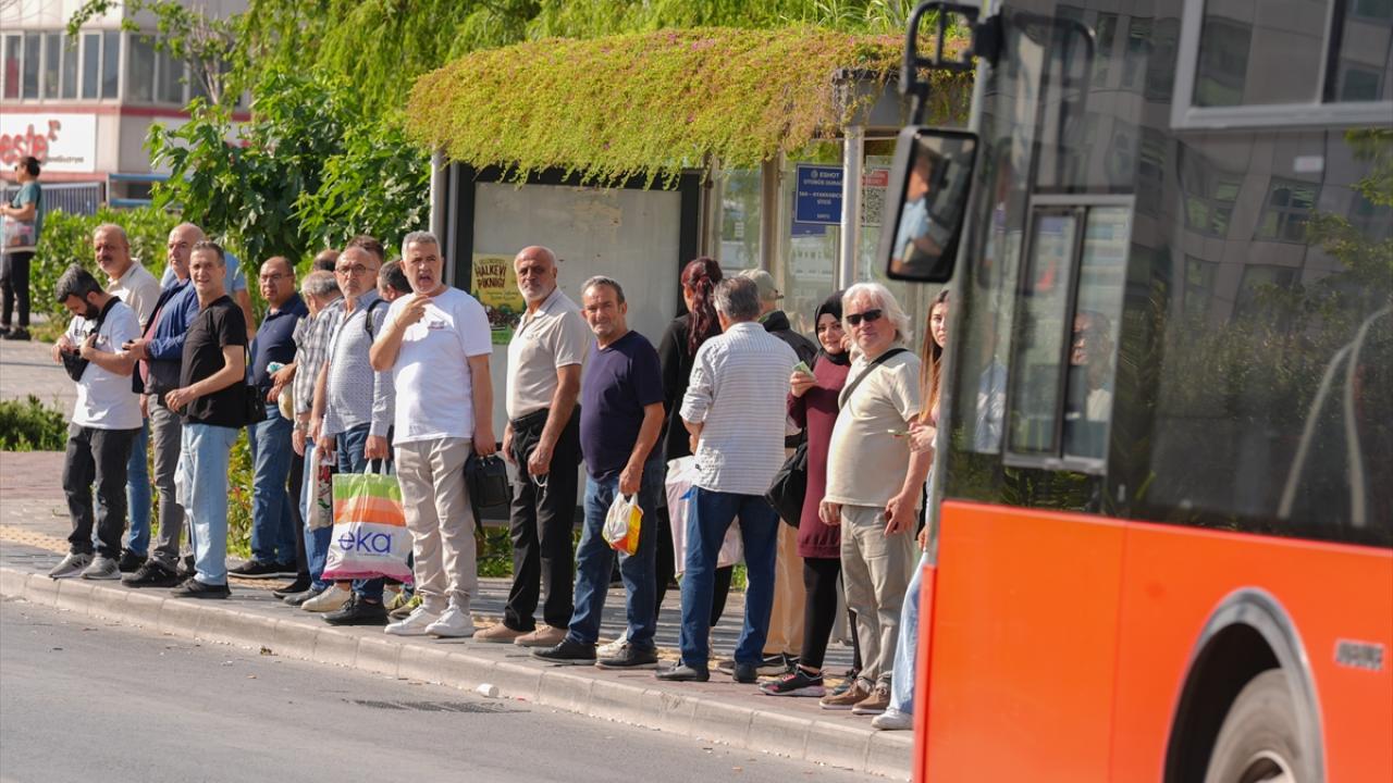 Grev nedeniyle şehir içi ulaşımda önemli bir görev üstlenen ESHOT otobüslerinin tamamına yakını kontak kapatınca duraklarda kuyruk oluştu.