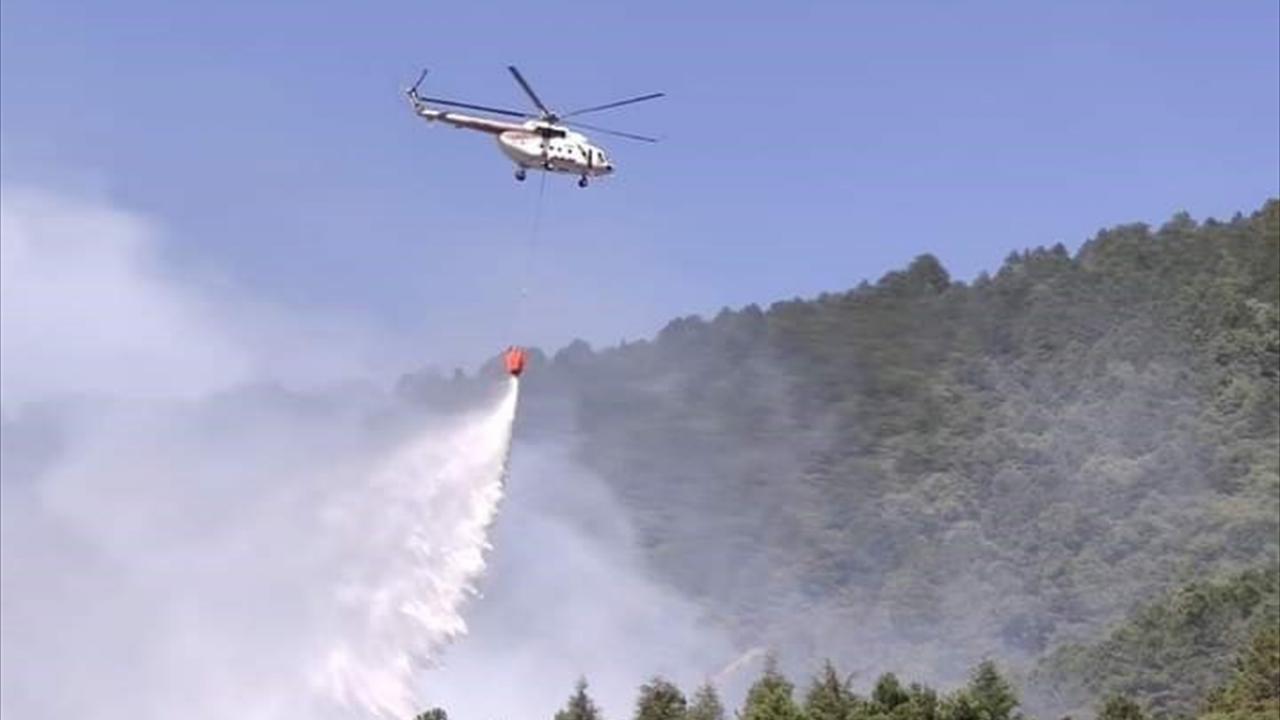 Orman Bölge Müdürlüğüne bağlı 1 helikopter ve 5 arazöz ile itfaiye ekipleri bölgeye yönlendirildi.