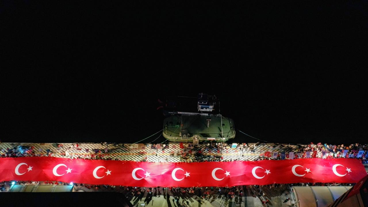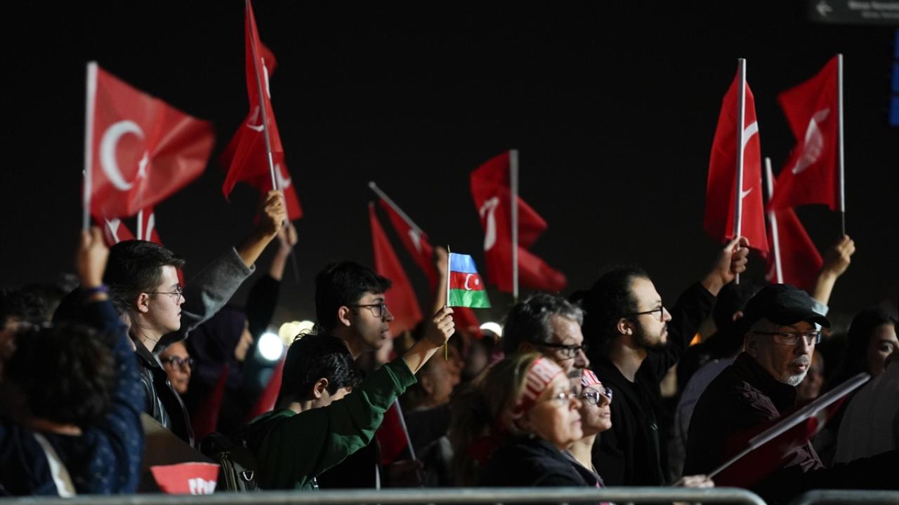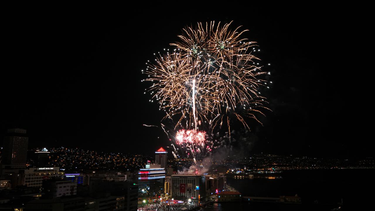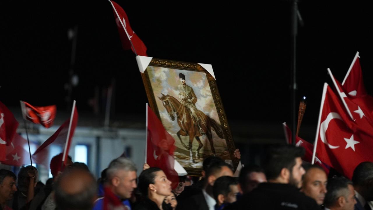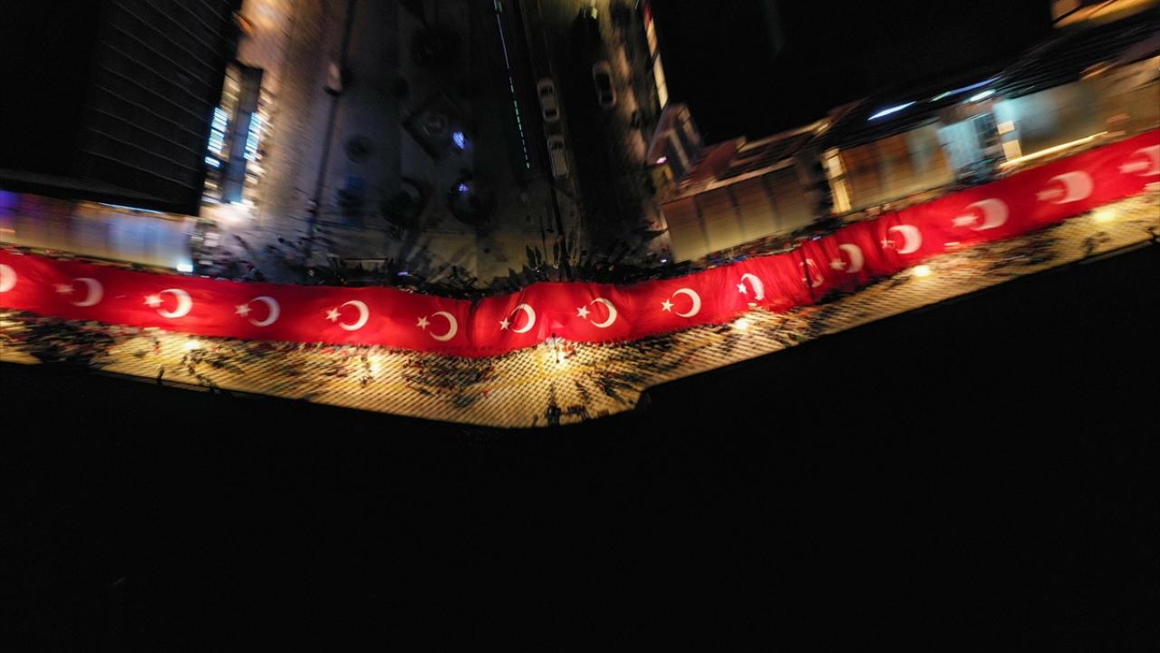 İzmir Valiliği tarafından Cumhuriyet Bayramı kutlamaları kapsamında Konak Meydanı`nda açılan 350 metrelik Türk bayrağı ile Cumhuriyet Meydanı`na yürüyüş ve fener alayı düzenlendi.