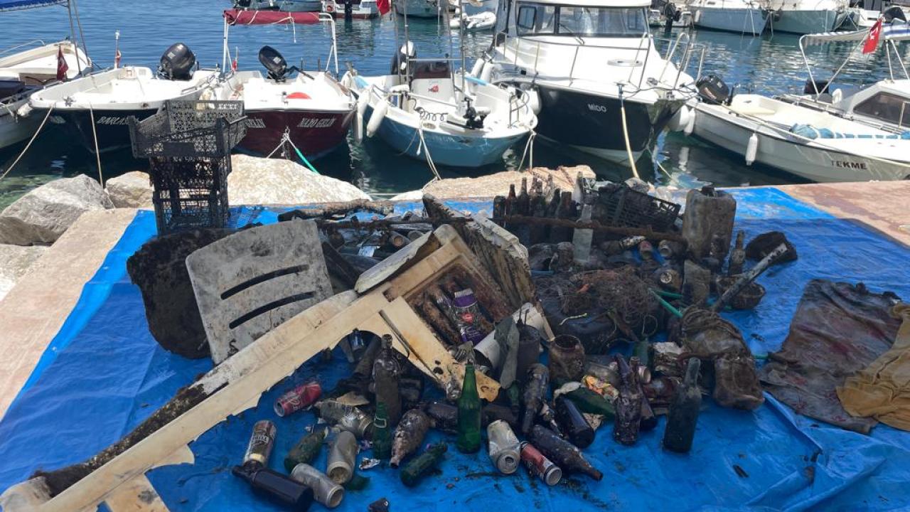 Dalgıçlar da kıyıya yakın bölgede batırılan Alaybey Vapuru`nun çevresindeki hayalet ağları topladı.