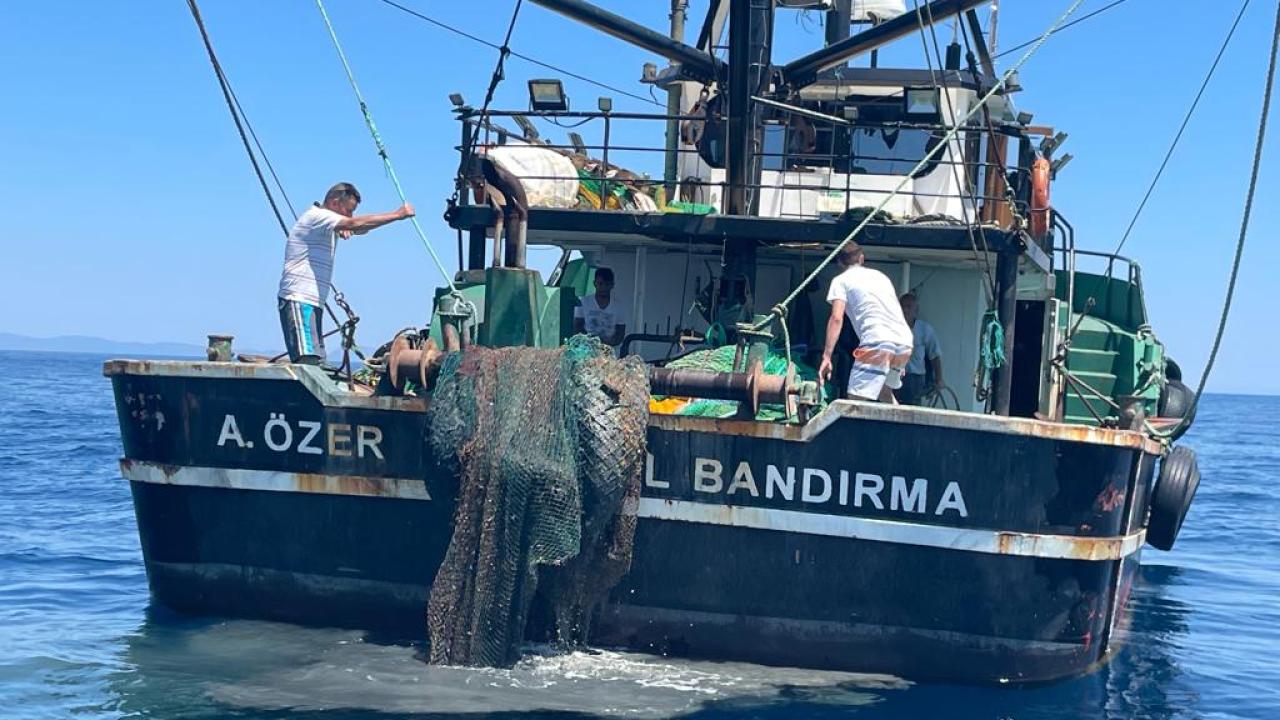 İzmir'de denizden 50 metre uzunluğunda hayalet ağ çıkarıldı