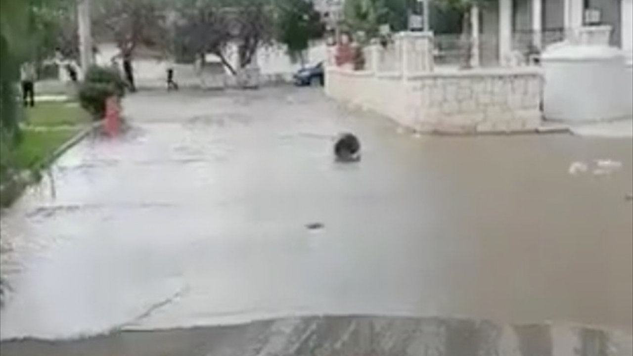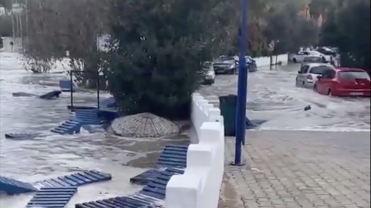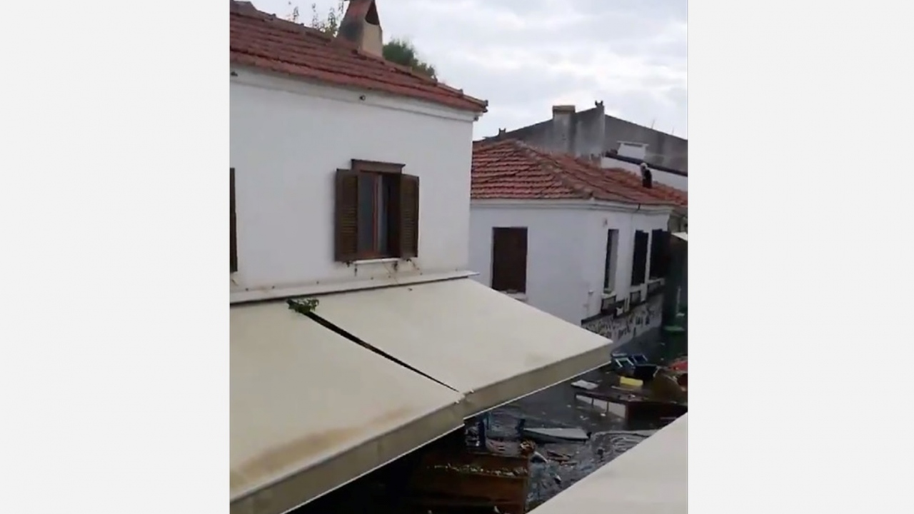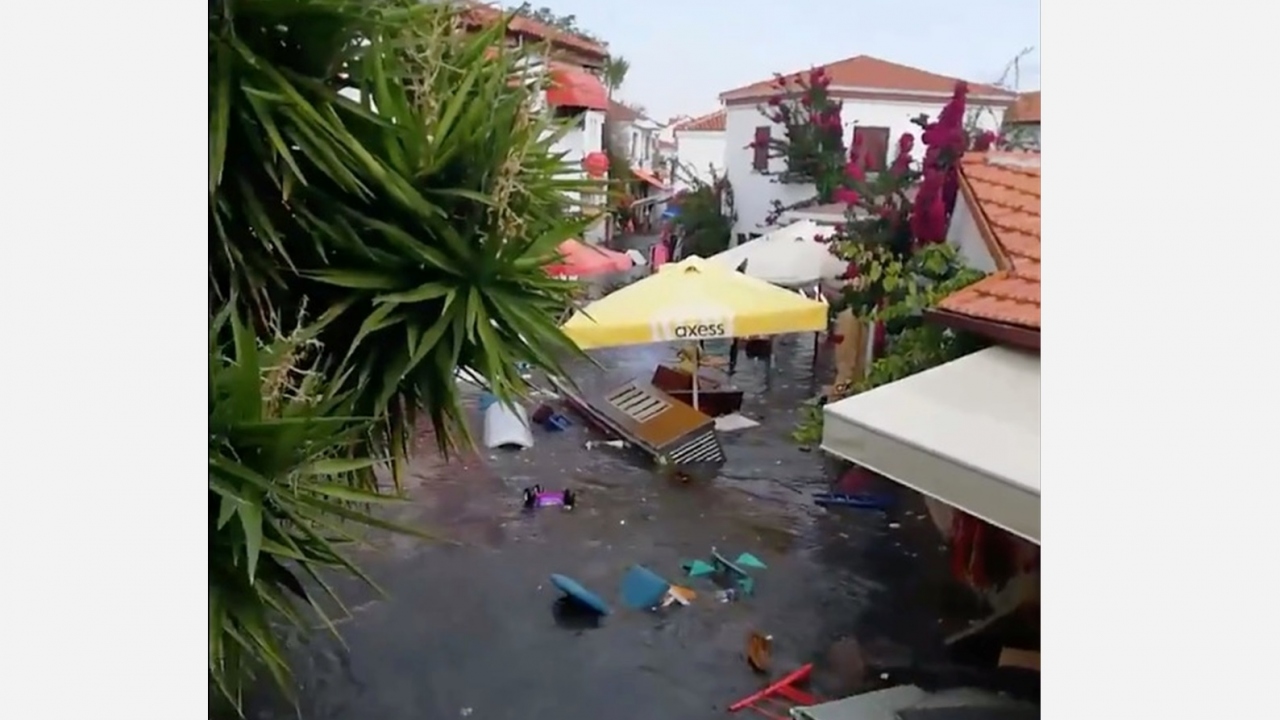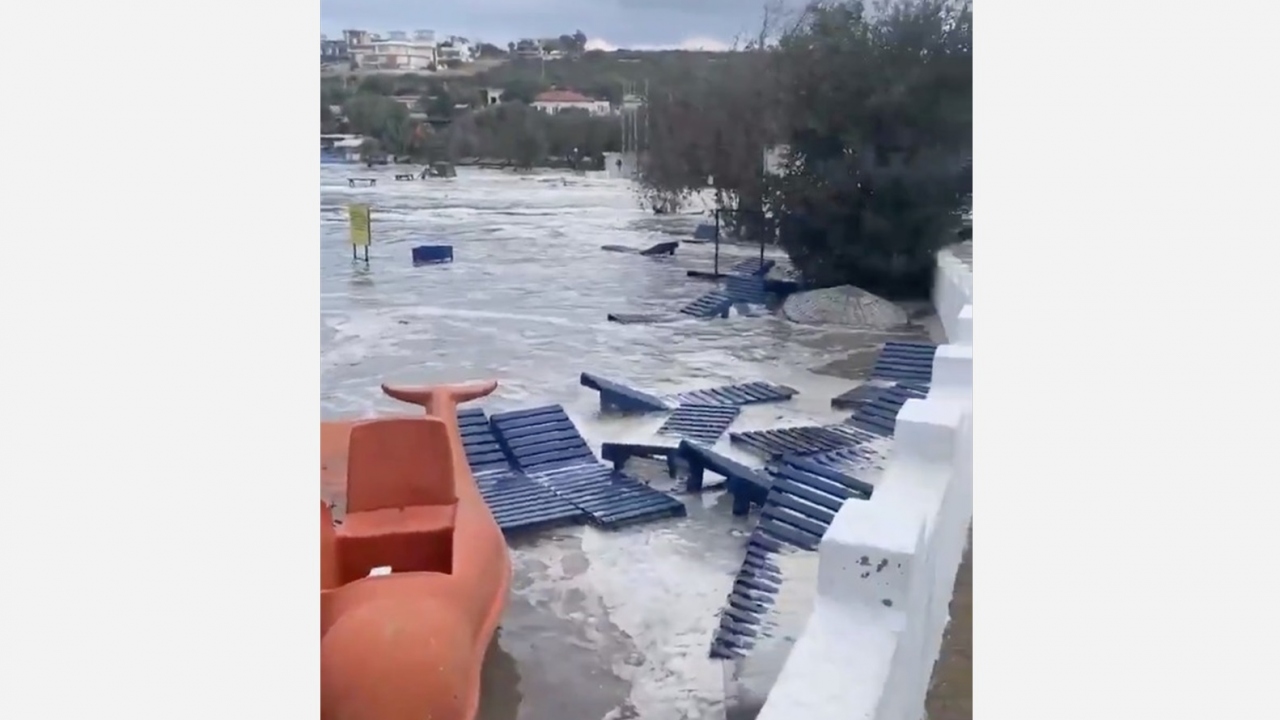 İzmir'in Seferihisar ilçesinde 6,6'lık depremin etkisiyle deniz seviyesi yükselmesi sonucu bazı cadde ve sokaklar su altında kaldı.