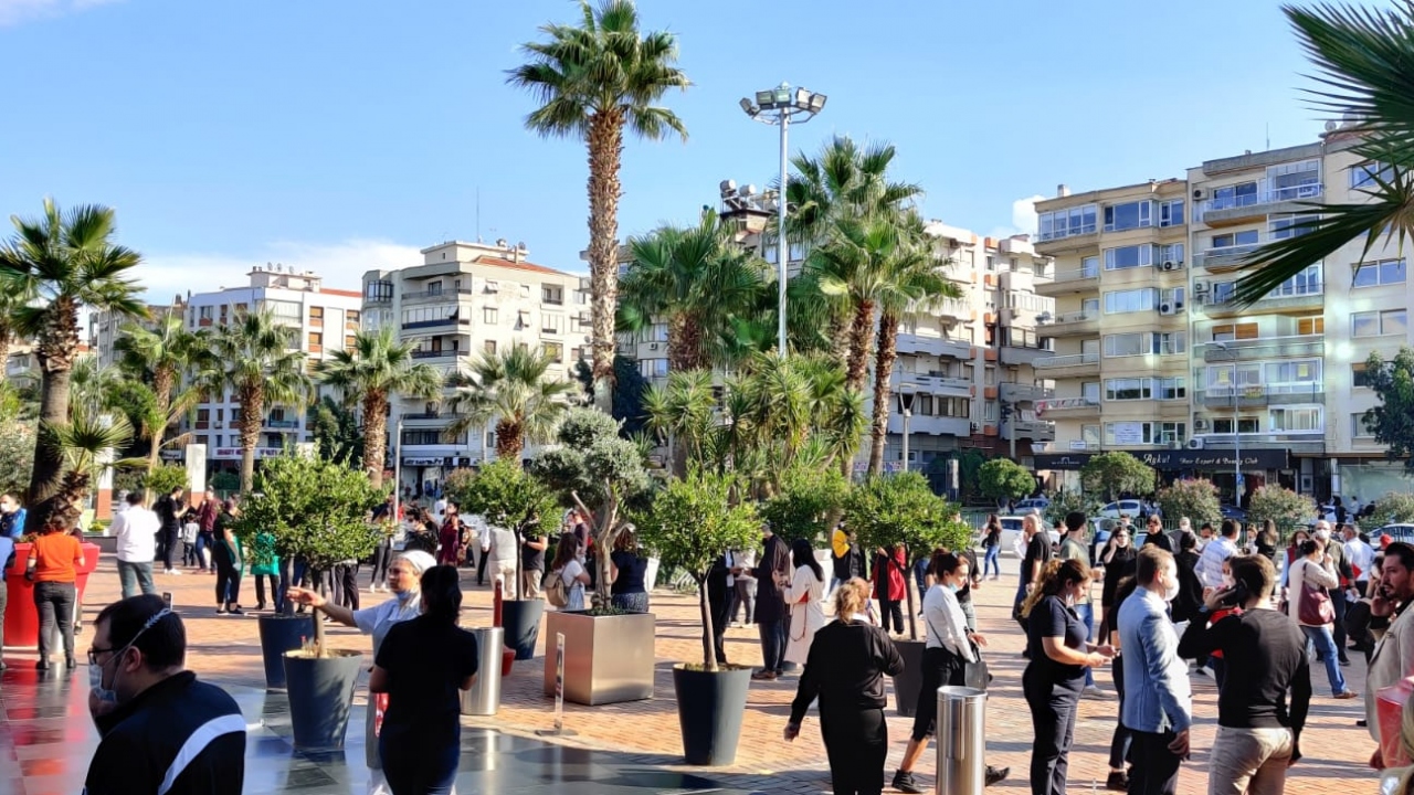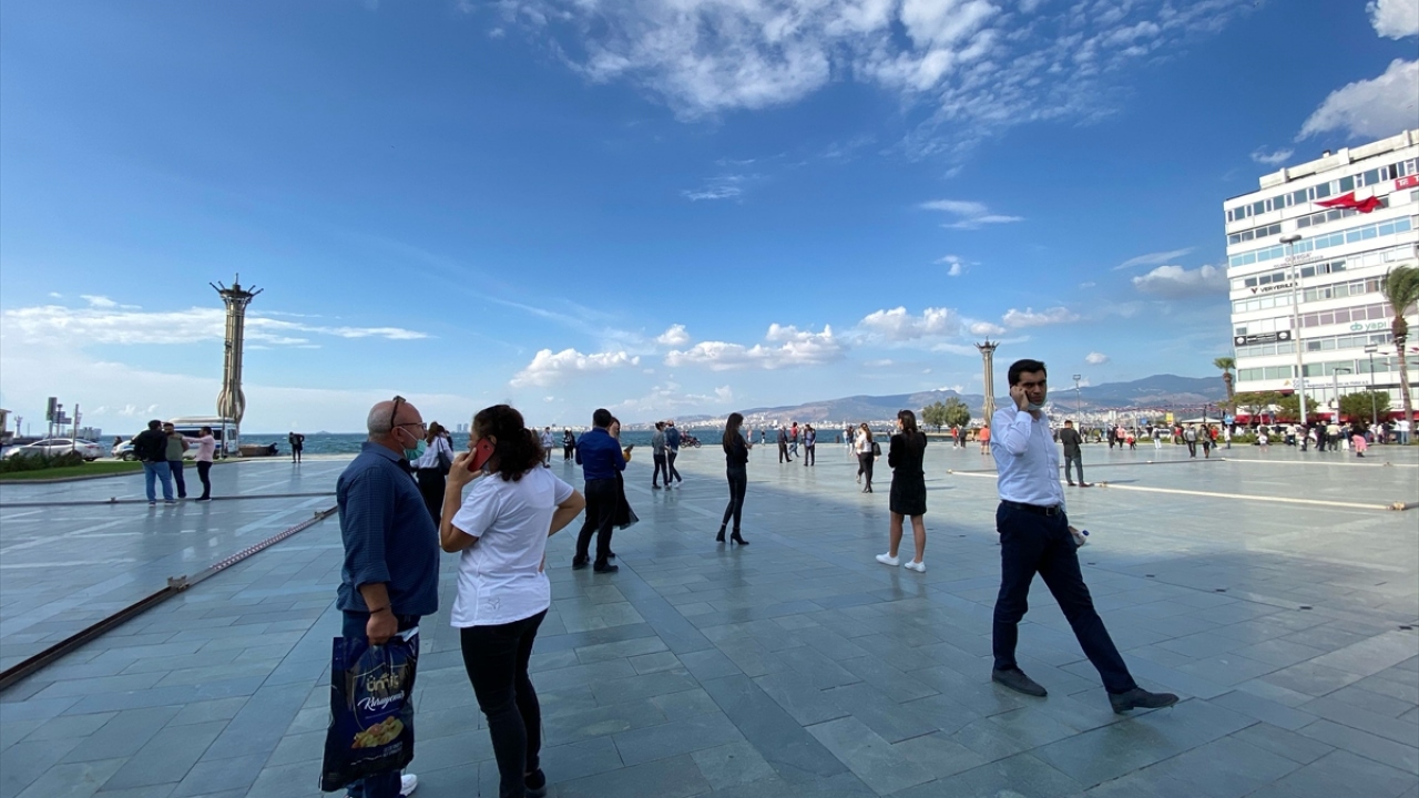 İzmir ve çevresinde hissedilen deprem sonrası vatandaşlar sokaklara çıktı.