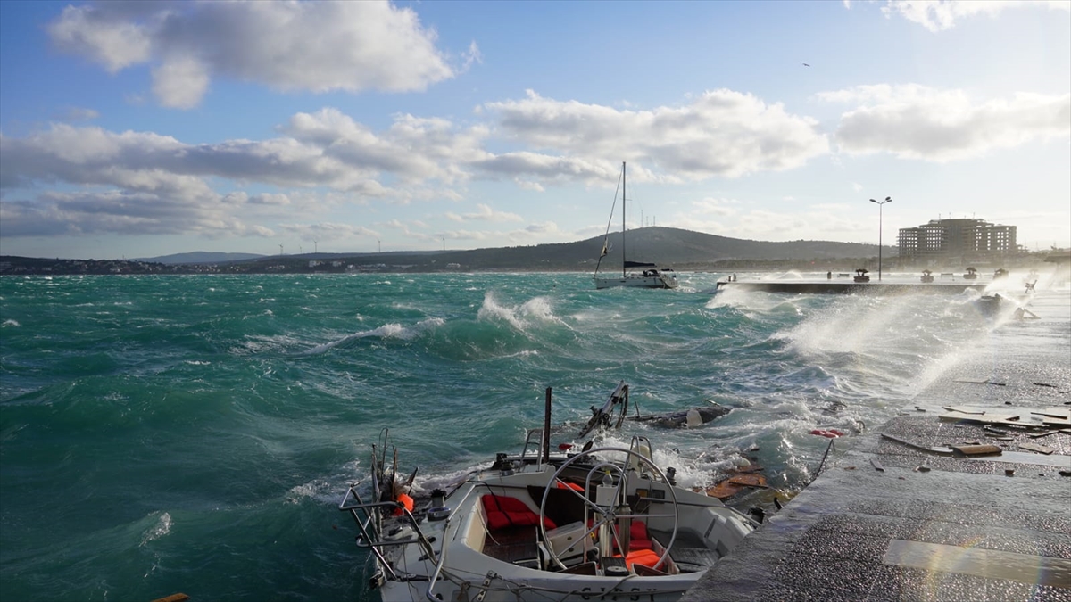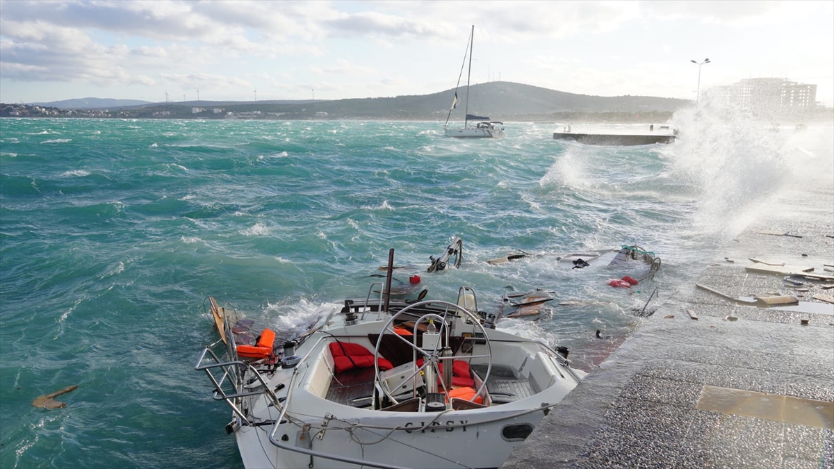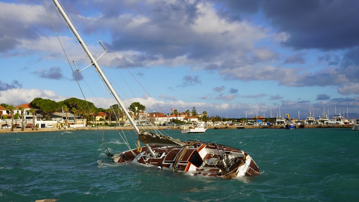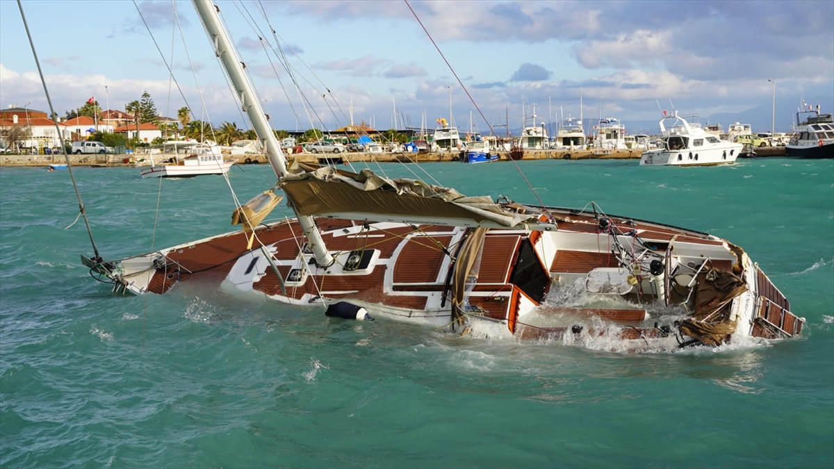 Poyraz fırtınası nedeniyle Çeşme Yıldızburnu`nda, bağlı oldukları halatlardan kurtulan bir yelkenli, kayalara çarparak parçalandı ve battı, bir motoryat alabora oldu.