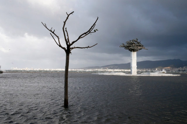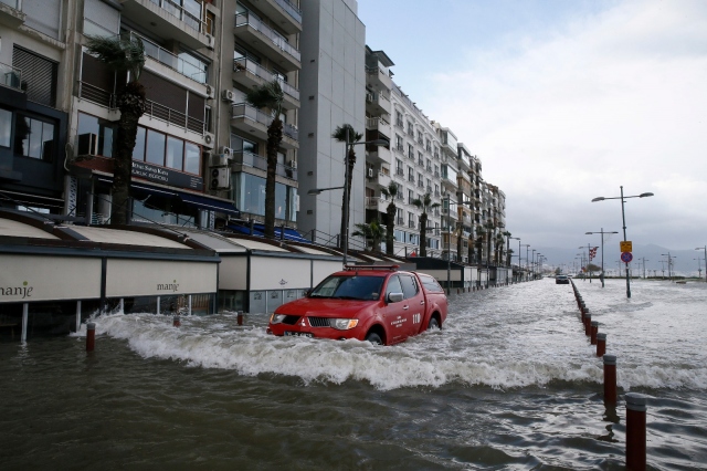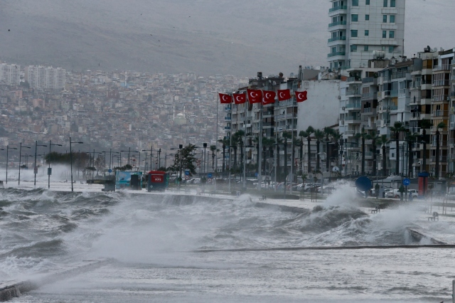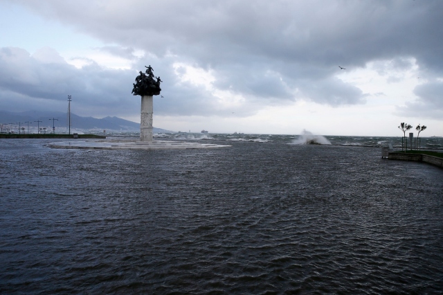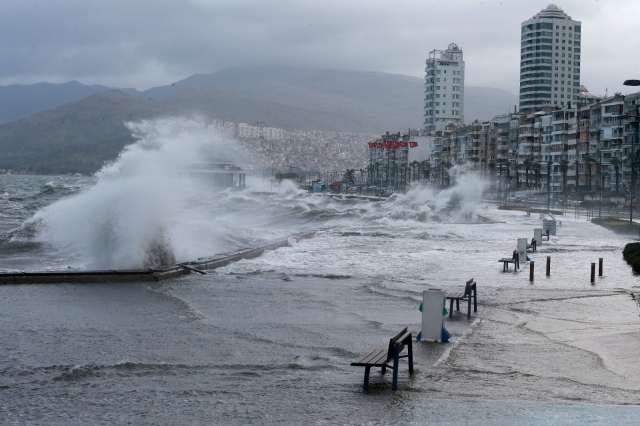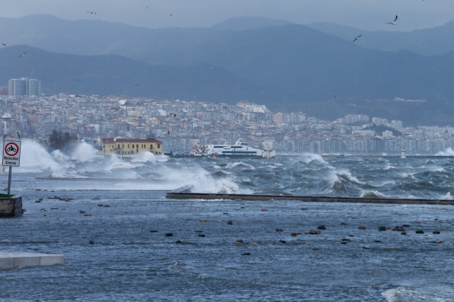Kentte etkili olan fırtına yaşamı olumsuz etkiliyor. Denizin taştı, Kordon'daki birçok işyerini su bastı, ulaşımda güçlük yaşandı. Vapur seferleri iptal edildi.