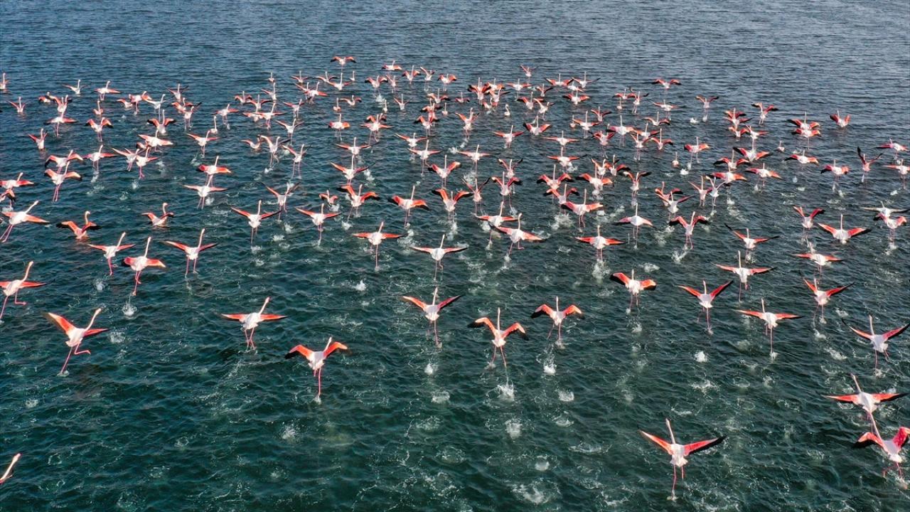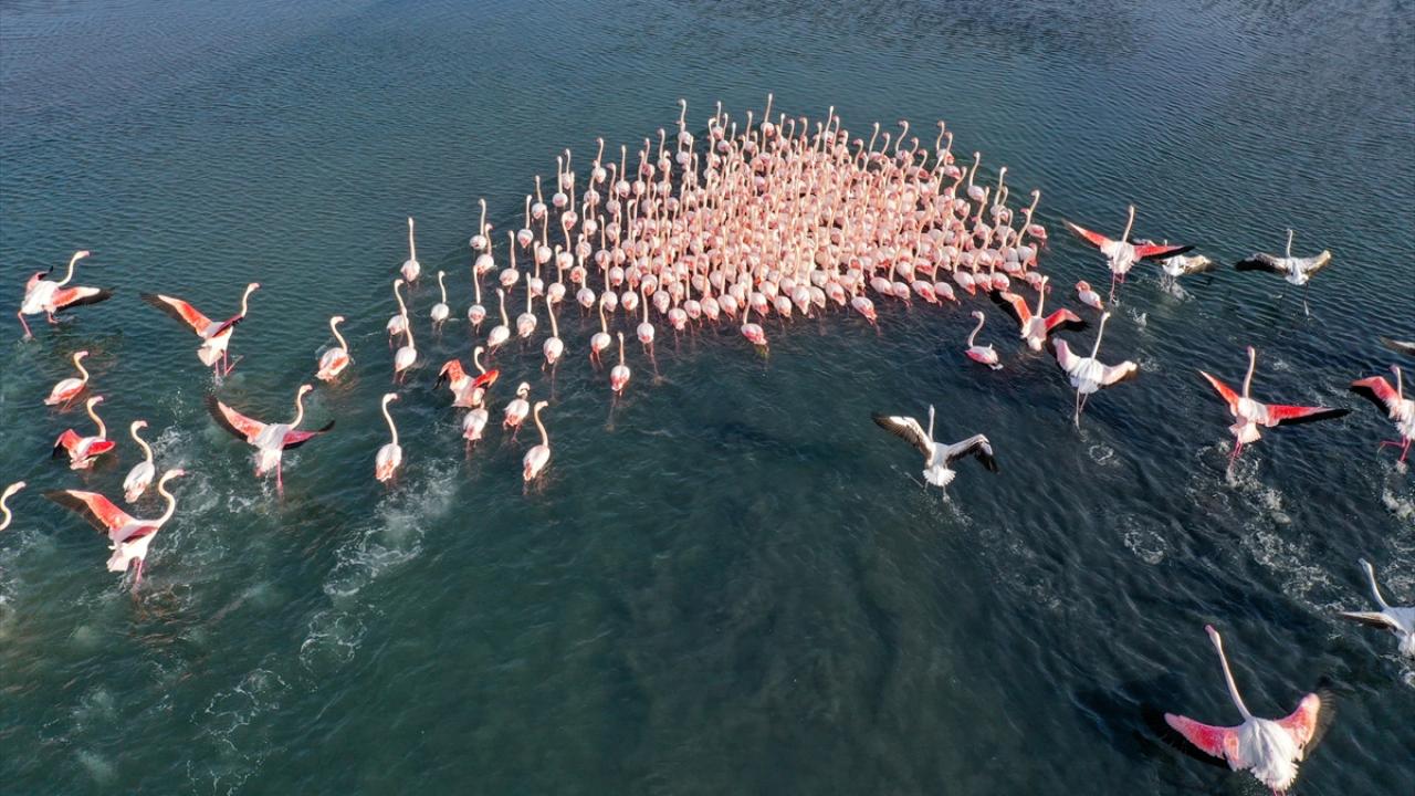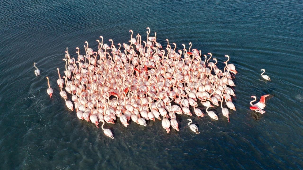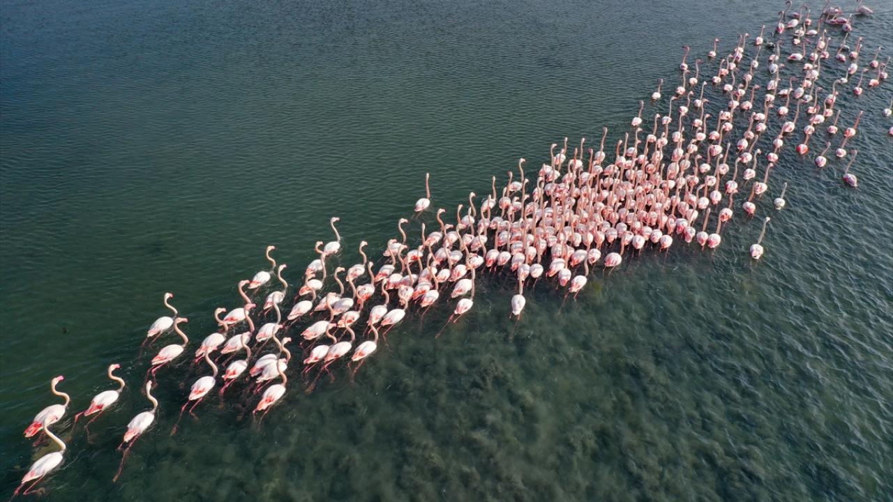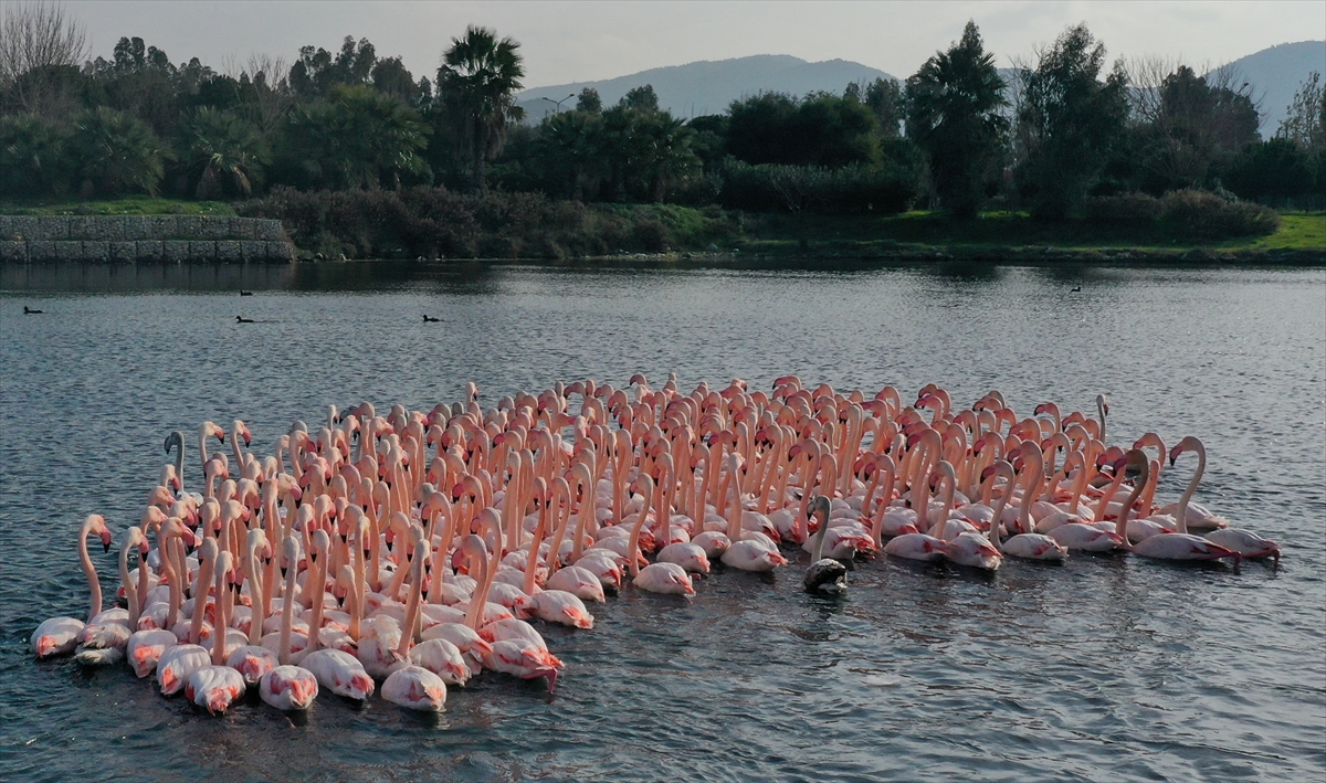 Türkiye'deki flamingoların iki üreme sahasından biri olan İzmir, kış mevsiminde de Anadolu'nun "allı turnası"na ev sahipliği yapmaya devam ediyor.