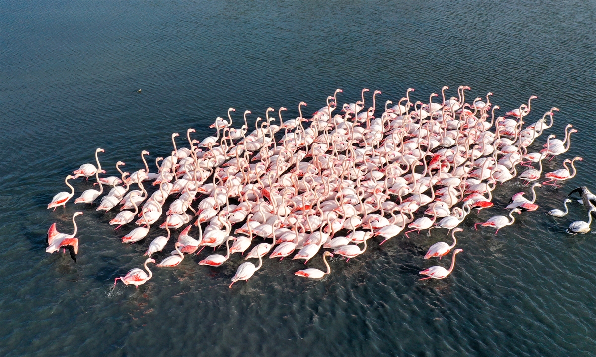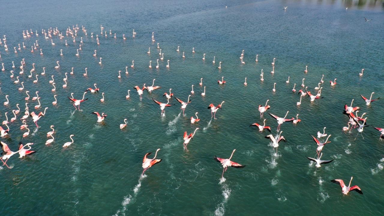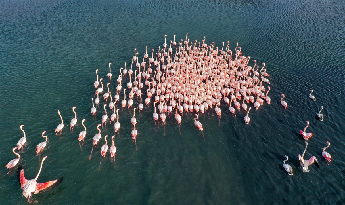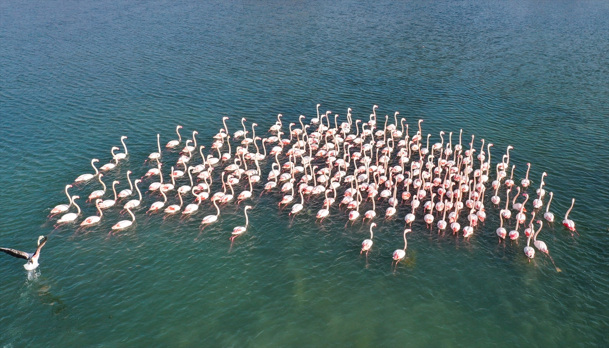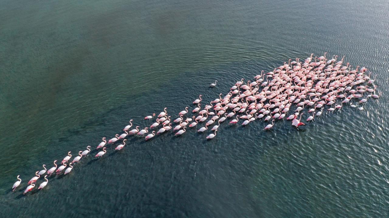 Türkiye'deki flamingoların iki üreme sahasından biri olan İzmir, kış mevsiminde de Anadolu'nun "allı turnası"na ev sahipliği yapmaya devam ediyor.