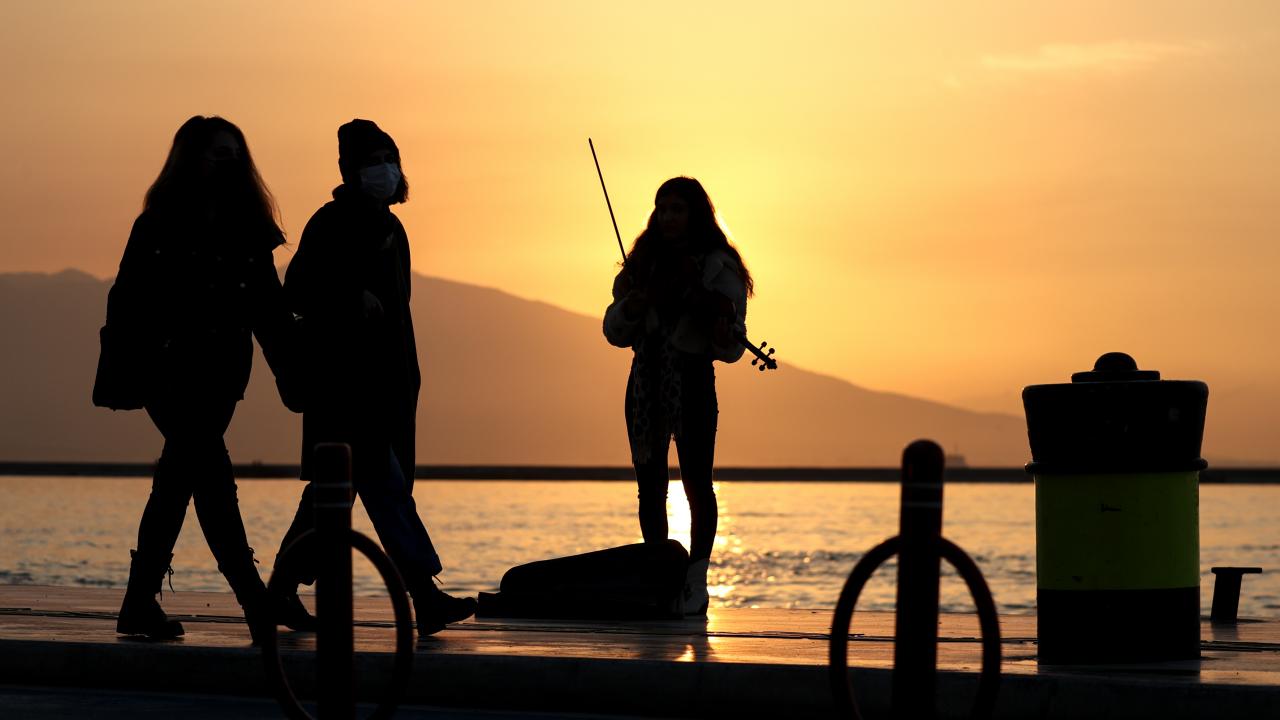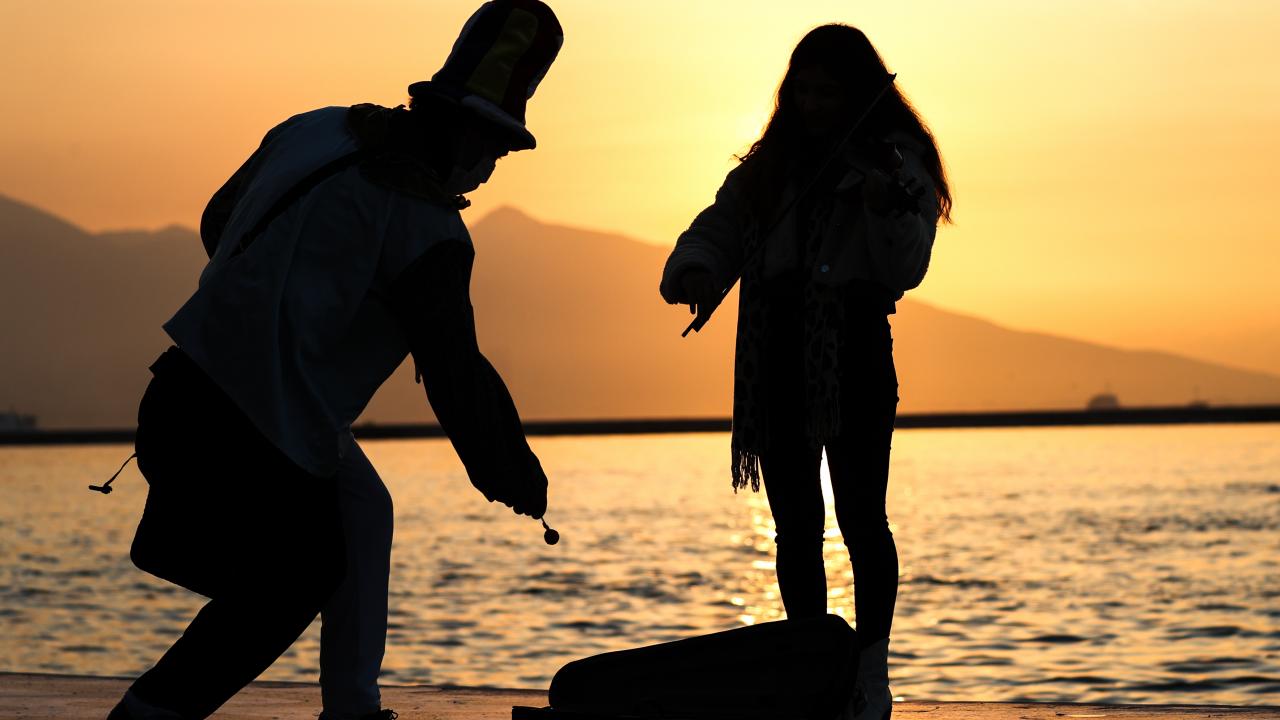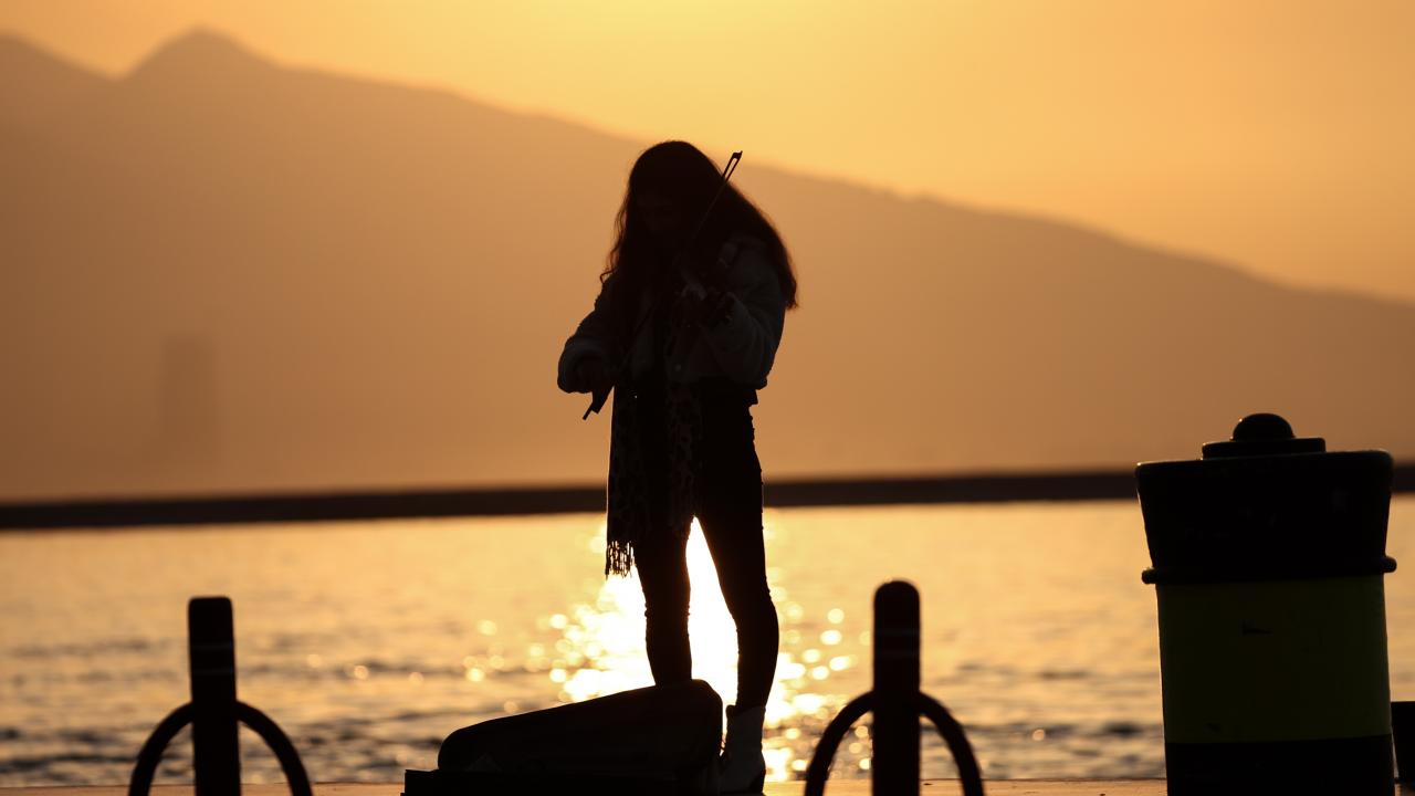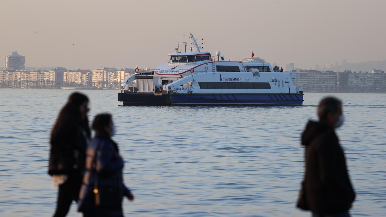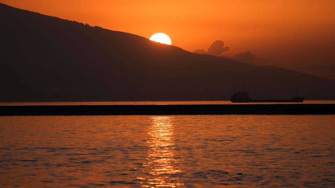 İzmir'de gün batımında güzel görüntüler oluştu. Bazı vatandaşlar kordon boyunda yürüyüş yaptı.