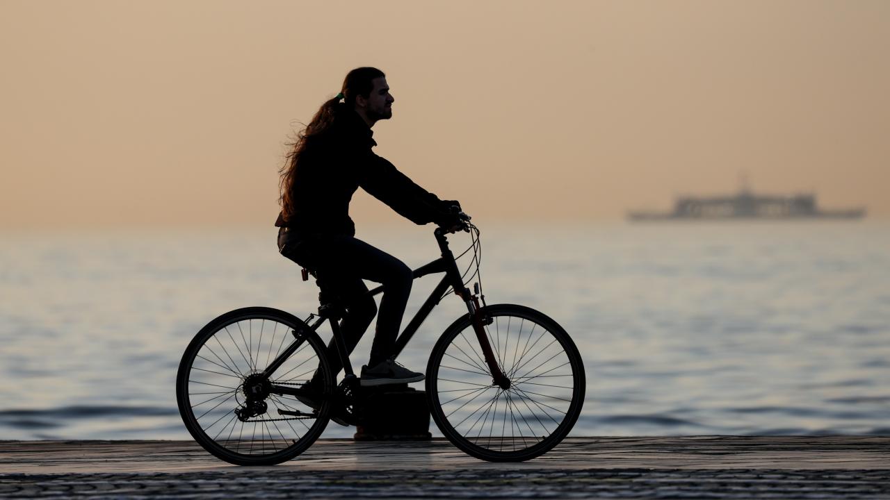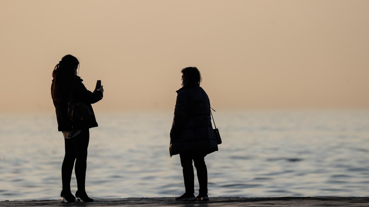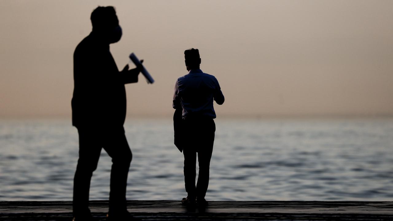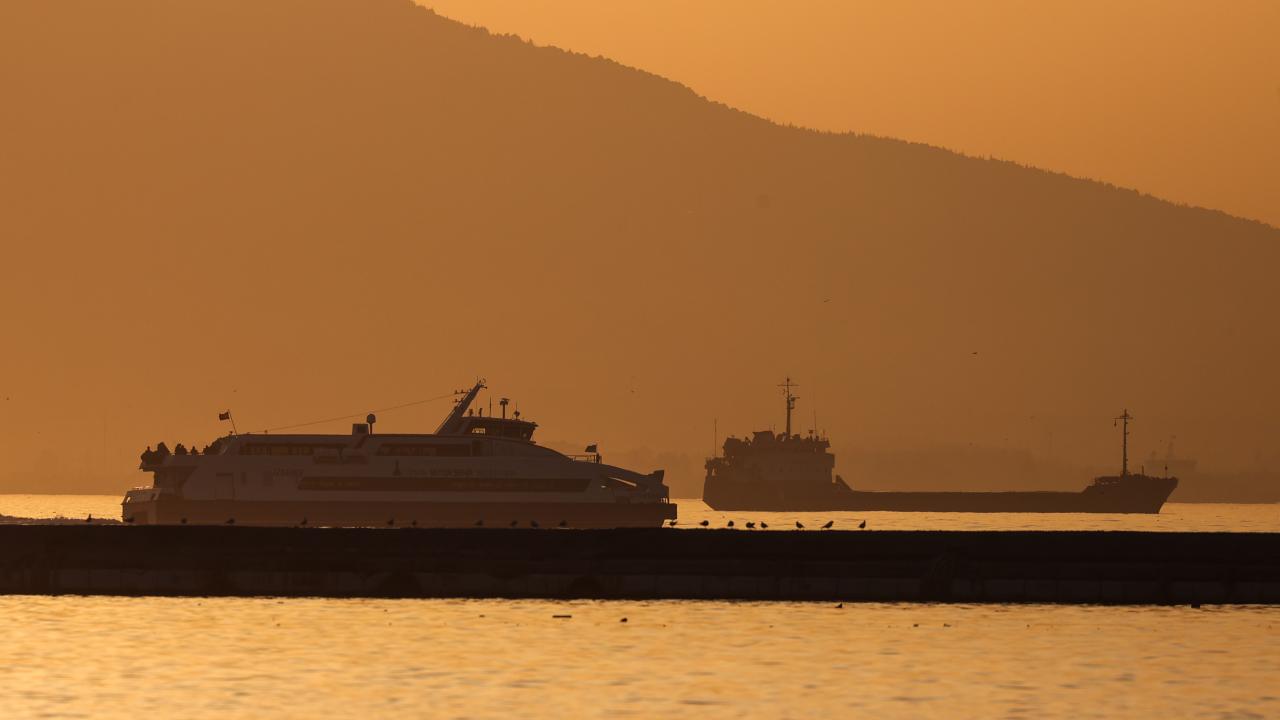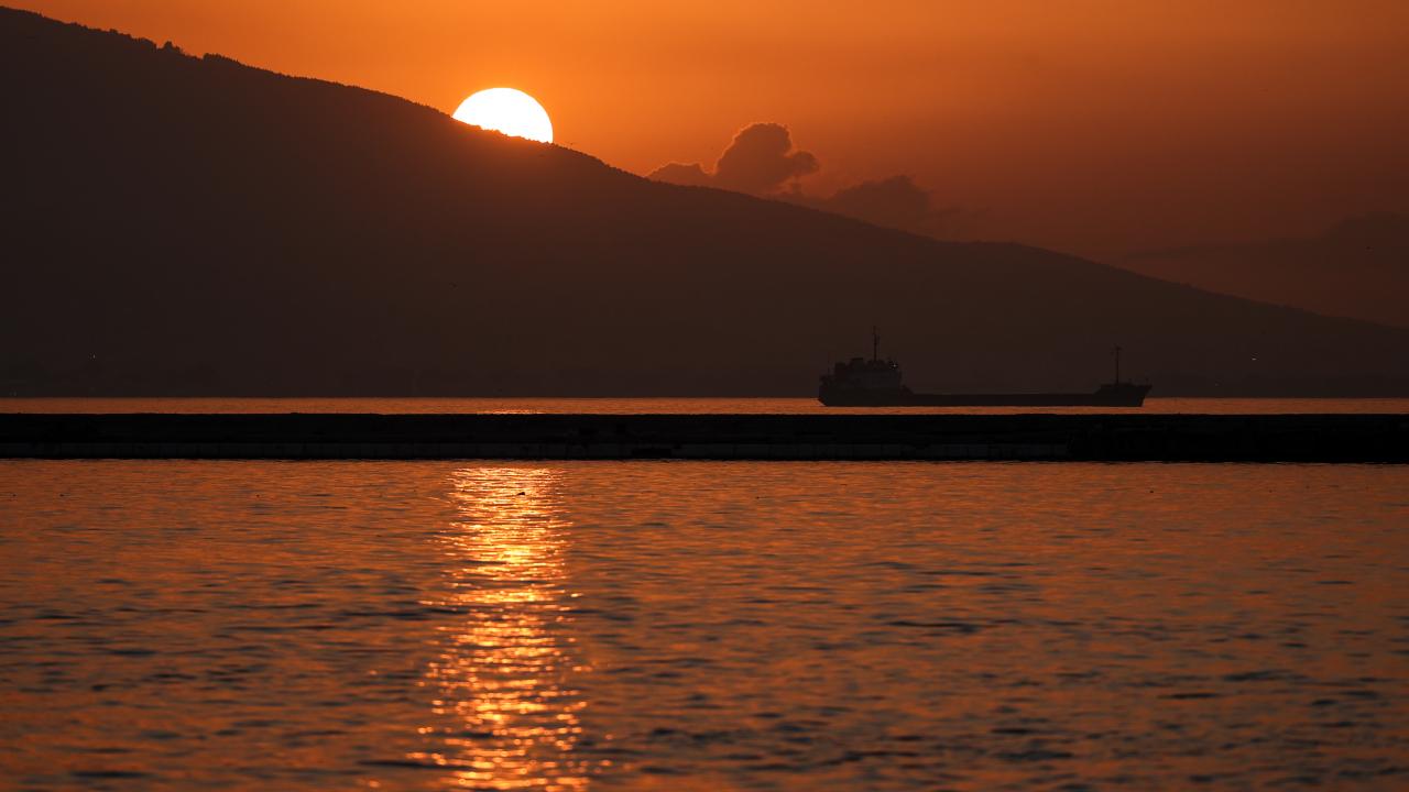 İzmir'de gün batımında güzel görüntüler oluştu. Bazı vatandaşlar kordon boyunda yürüyüş yaptı.