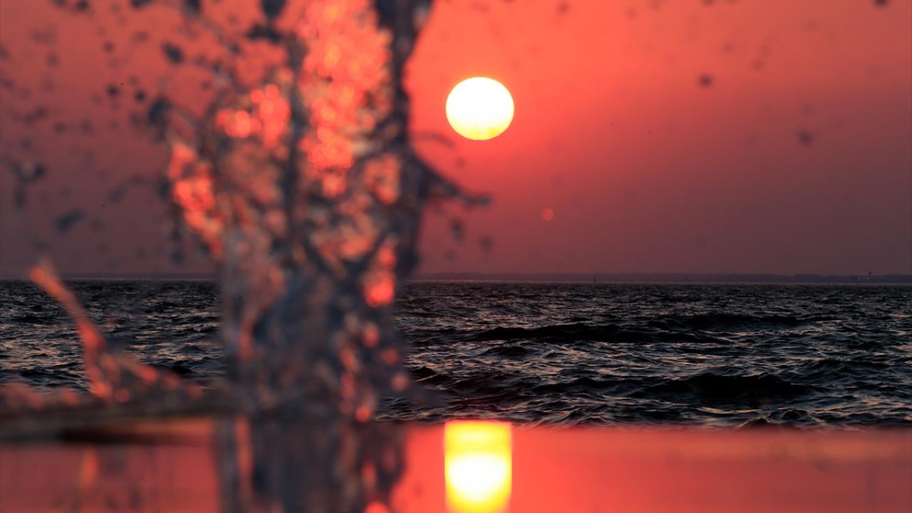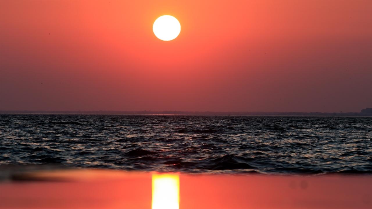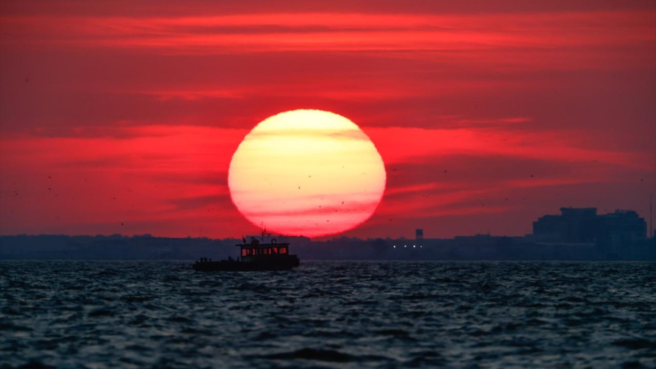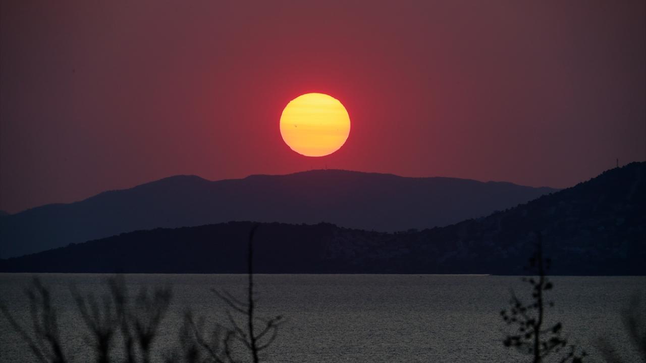 İzmir'de gün batımında gökyüzünde oluşan kızıllık güzel görüntüler oluşturdu.