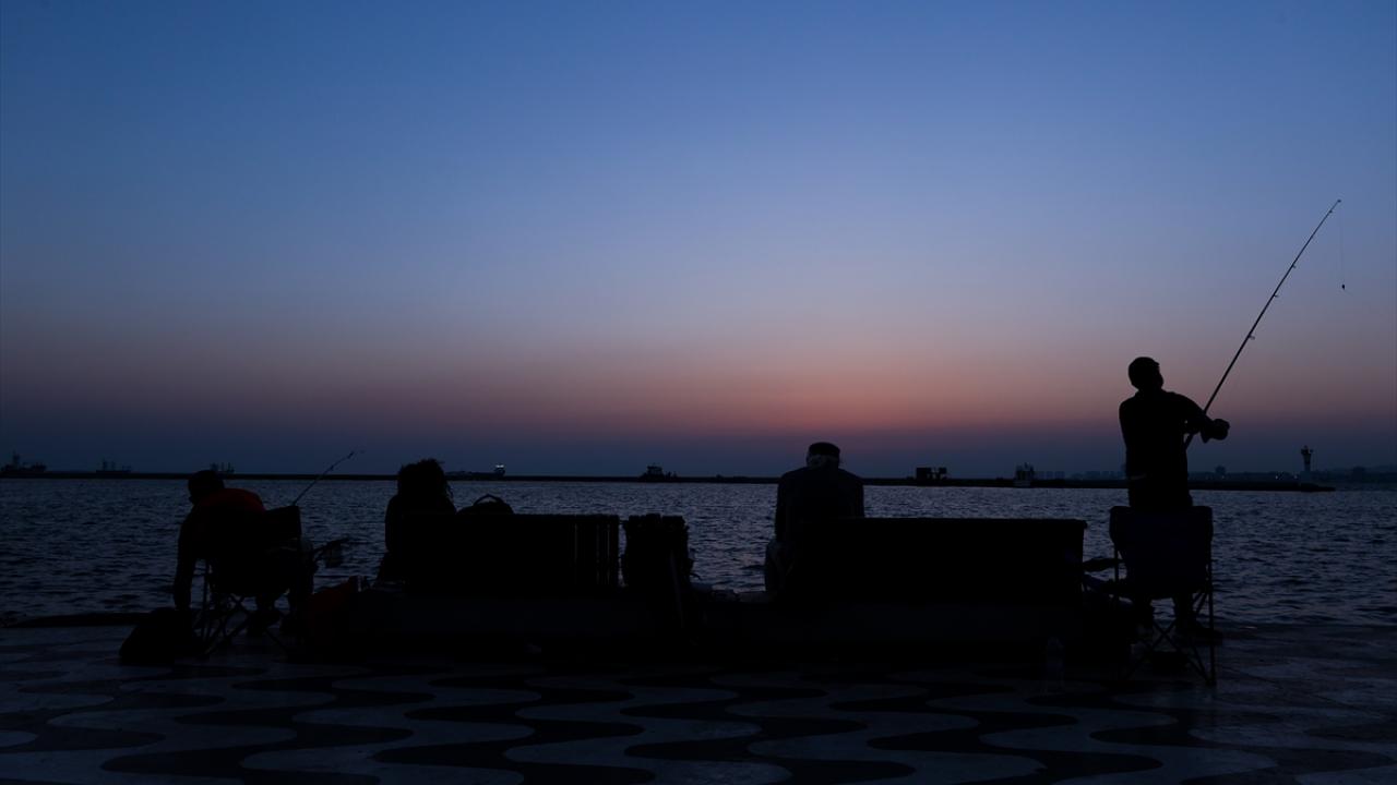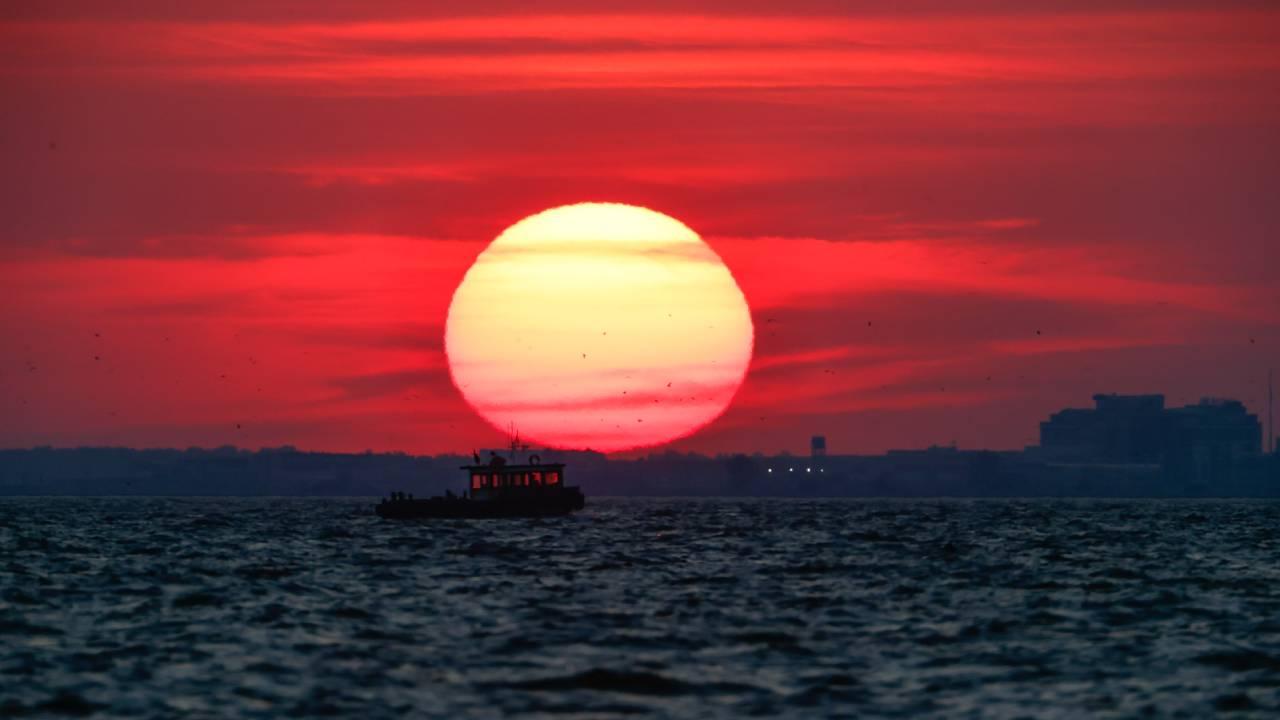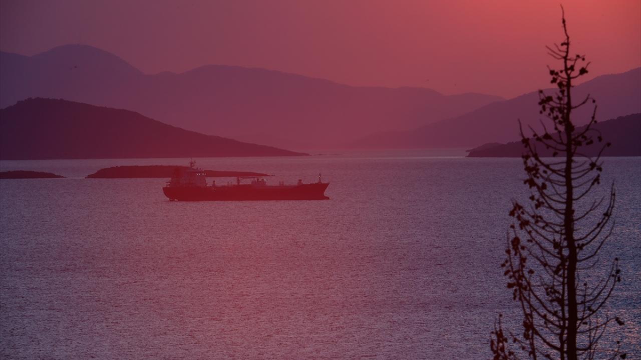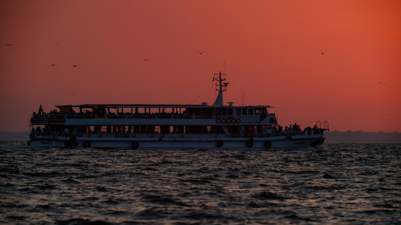 İzmir'de gün batımında gökyüzünde oluşan kızıllık güzel görüntüler oluşturdu.