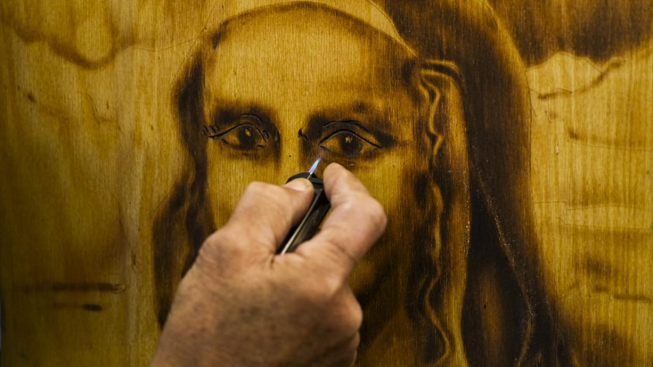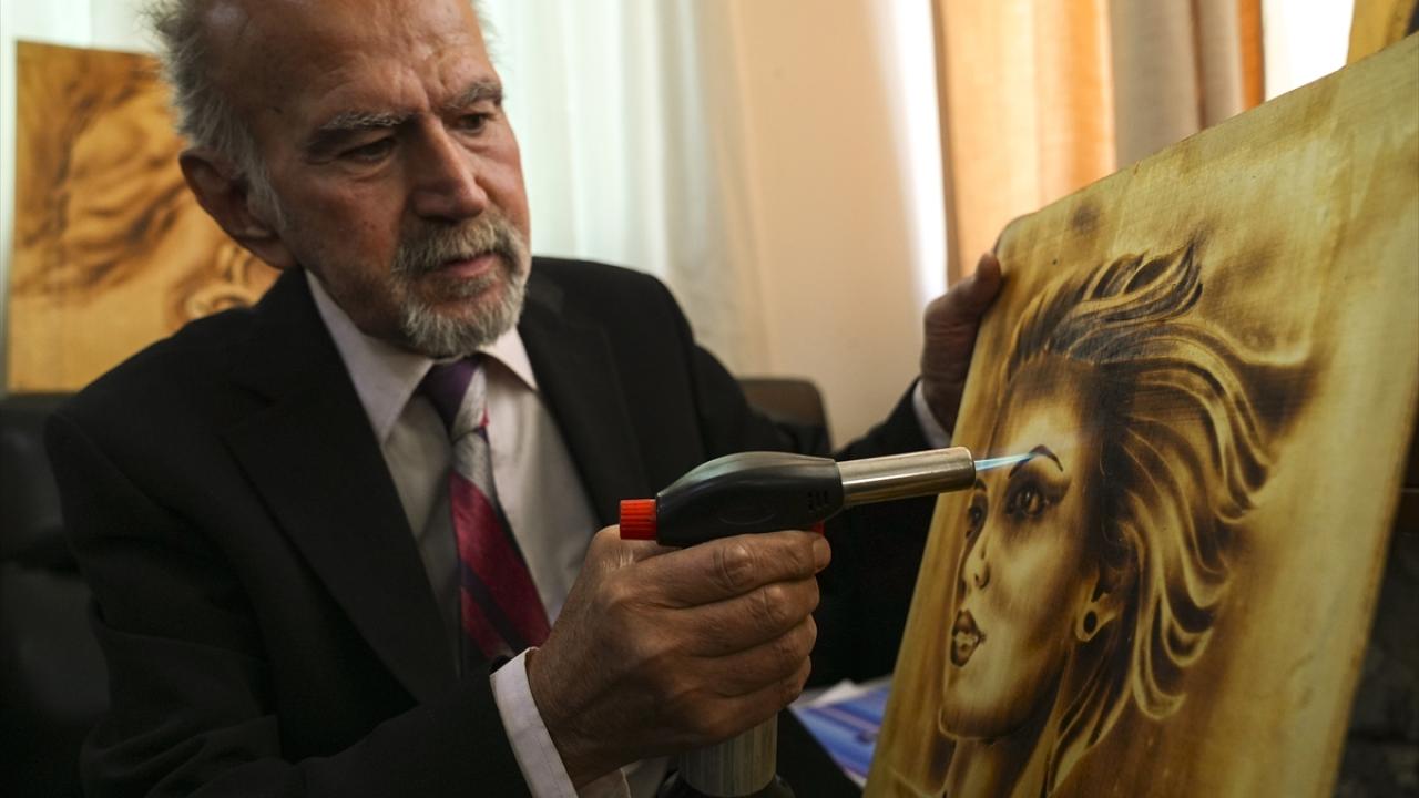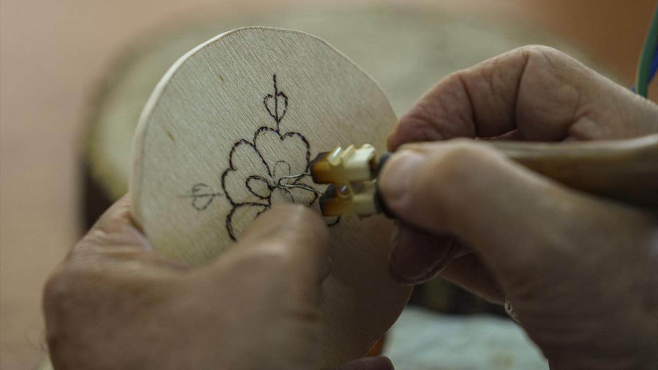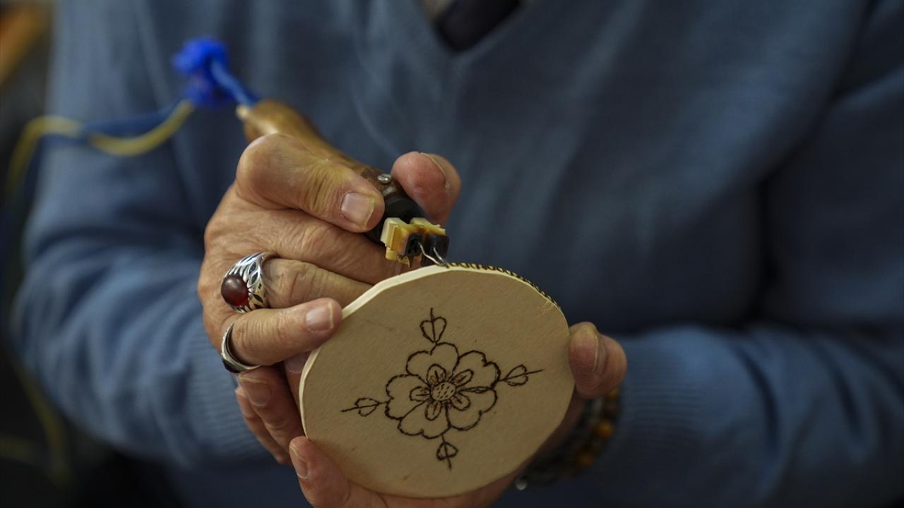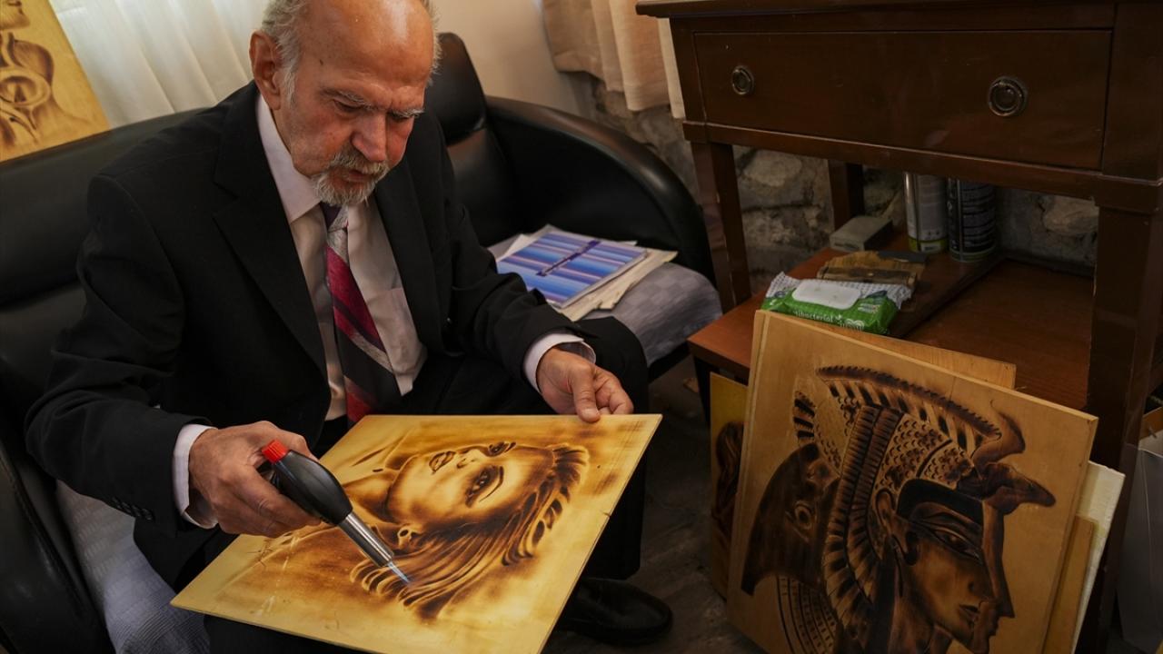 Huzurevi sakinlerinden Yalçın Ünver, 2002 yılında kavak ağacı üzerine ahşap yakma tekniğiyle eserler yapmaya başladığını söyledi.