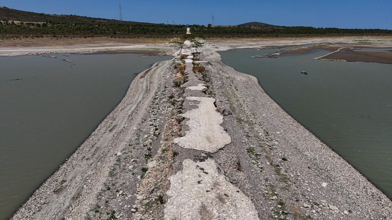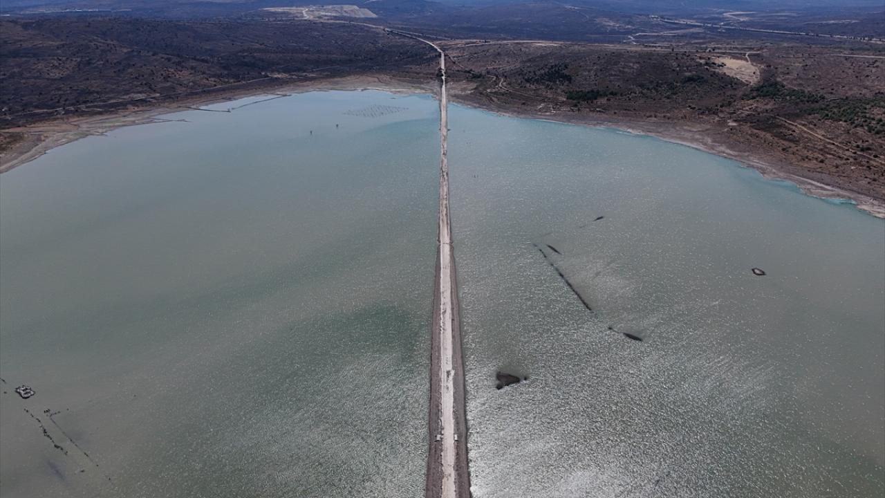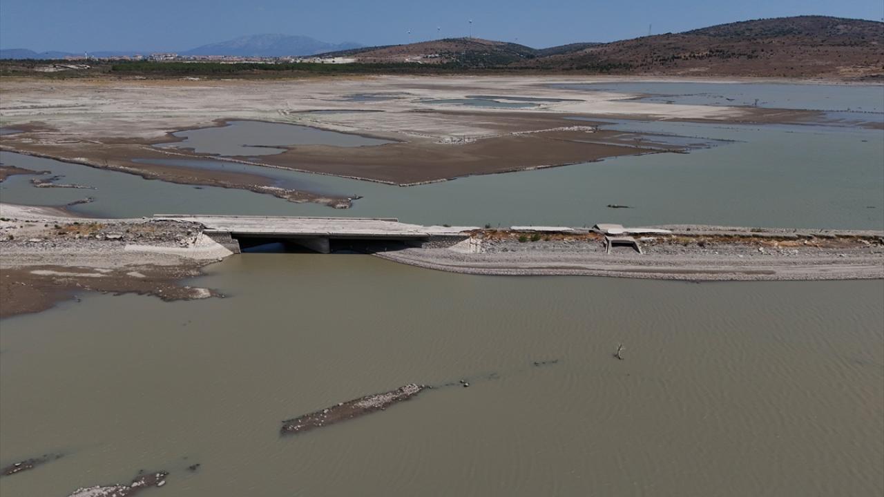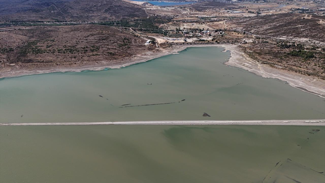 Barajda su seviyesinin düşmesiyle birlikte, baraj yapımından önce kullanılan eski İzmir-Çeşme kara yolu suların çekildiği alanda yeniden görünür hale geldi. Yürüyerek karşıya geçmenin mümkün olduğu yol, dronla görüntülendi.