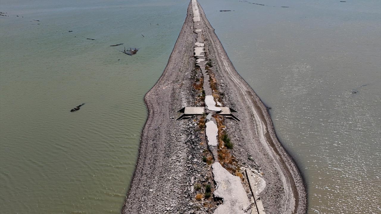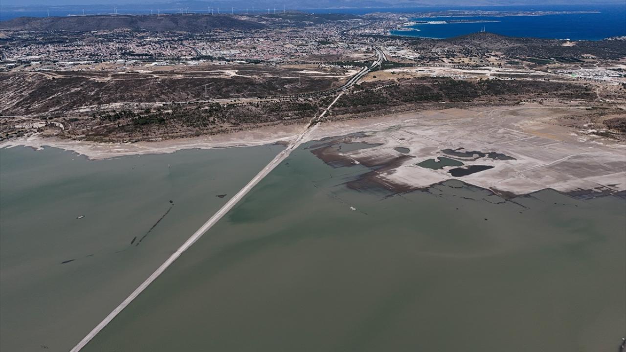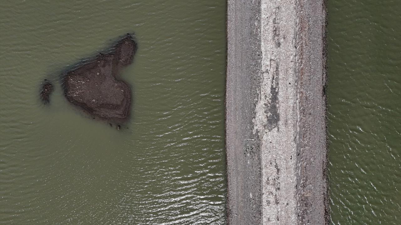İzmir'in Çeşme ilçesindeki Alaçatı Kutlu Aktaş Barajı'nda kuraklık nedeniyle su seviyesinin düşmesi sonucu, eski İzmir-Çeşme kara yolu ortaya çıktı. Barajda su seviyesinin düşmesiyle birlikte, baraj yapımından önce kullanılan eski İzmir-Çeşme kara yolu suların çekildiği alanda yeniden görünür hale geldi. Yürüyerek karşıya geçmenin mümkün olduğu yol, dronla görüntülendi.