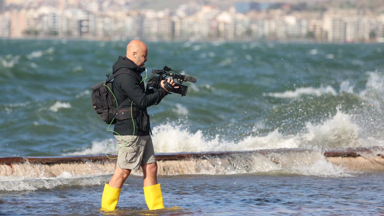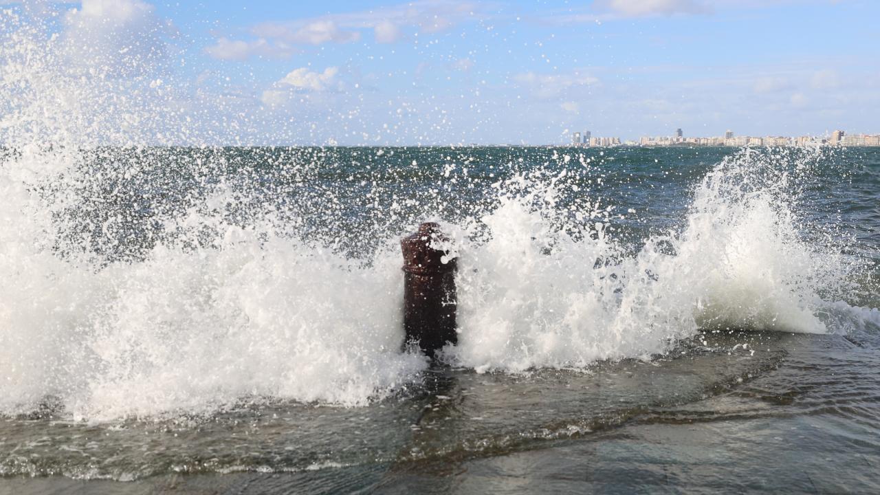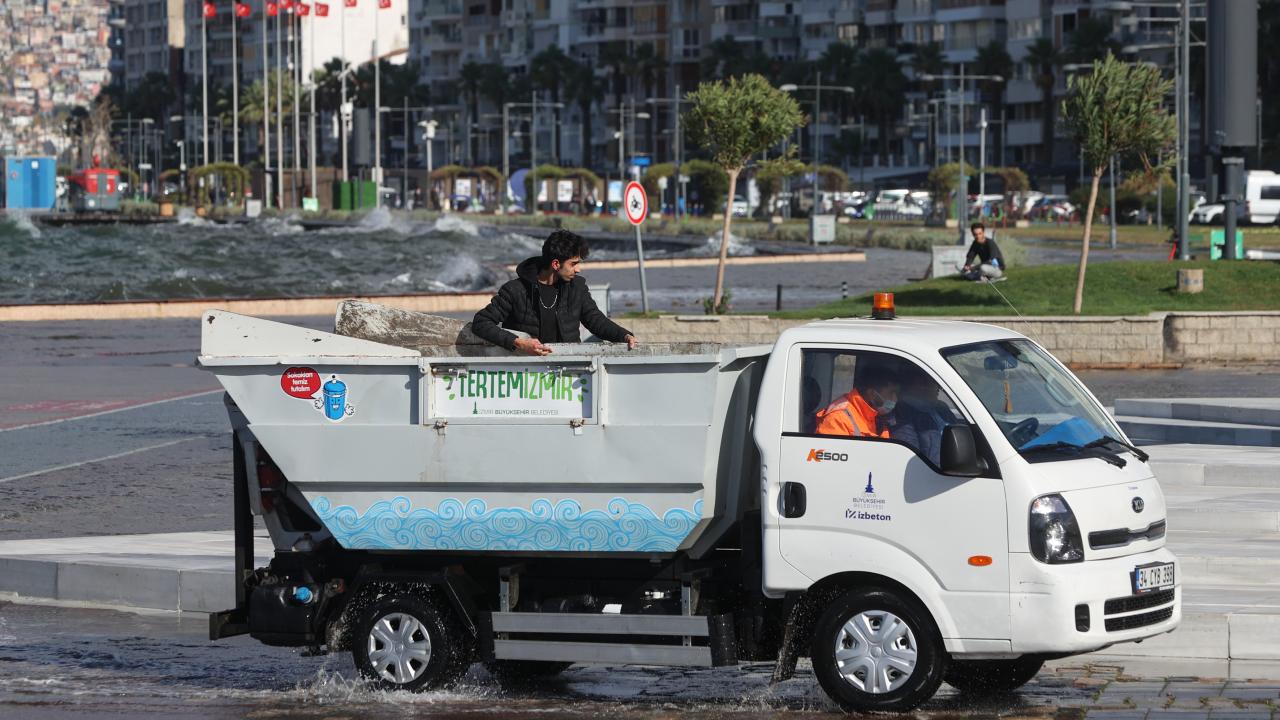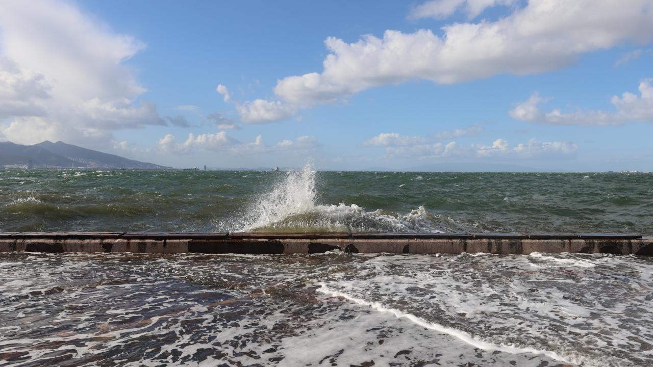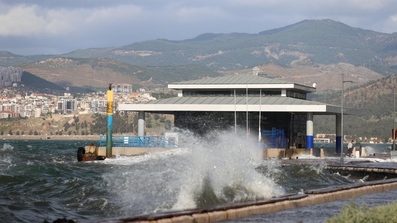 Çeşme`de ise deniz seviyesinin yükselmesi nedeniyle sahil bandı su altında kaldı. Kent merkezinde kıyıya bağlı bir balıkçı teknesi ise battı.