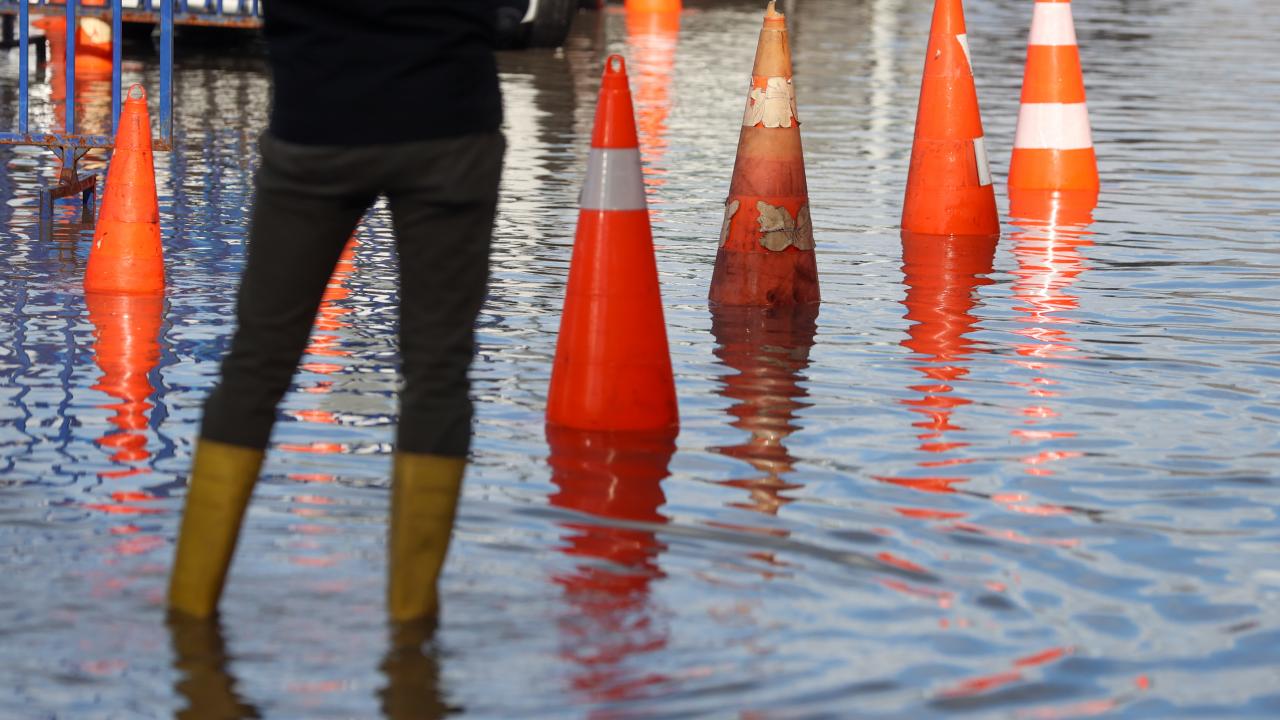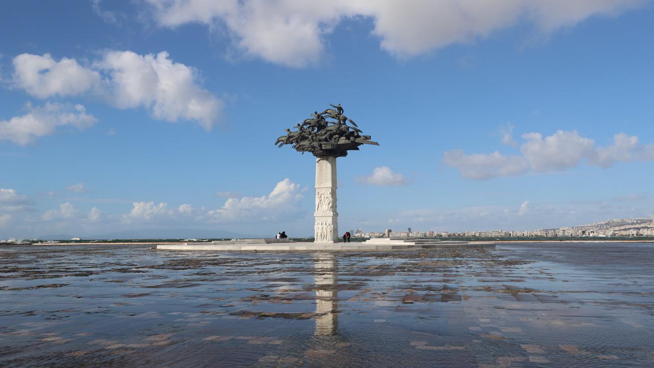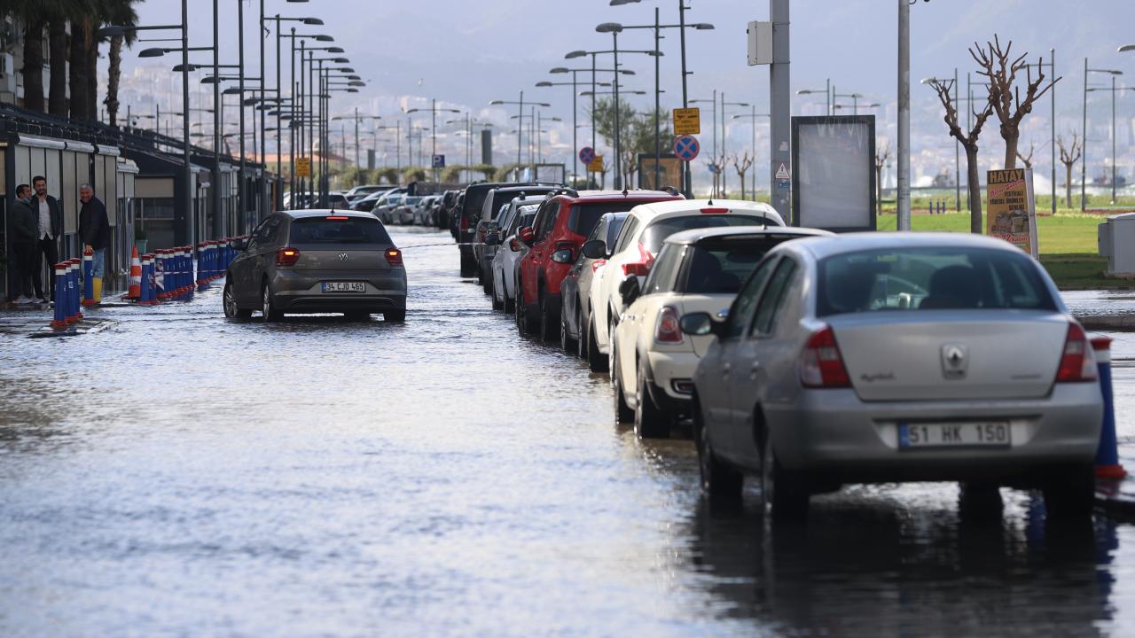 Gündoğdu Meydanı`ndan geçen yol, trafiğe kapatıldı. Kordon`da su basan bazı iş yerlerinde de tahliye çalışması yürütülüyor.