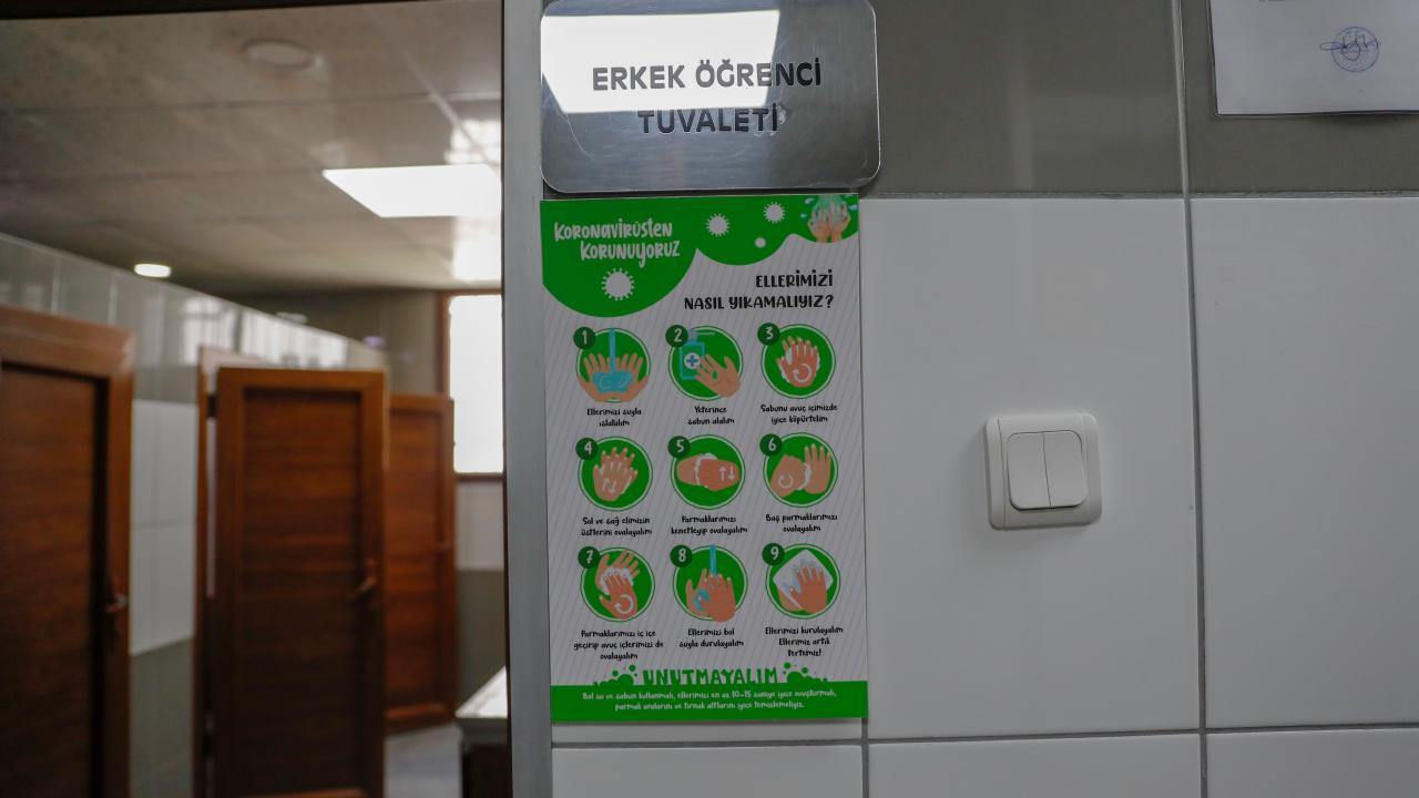Tuvaletlere doğru el yıkamayı anlatan broşürler yapıştırıldı. Gün sonunda okuldaki tüm alanların dezenfektanlarla temizlenmesi için planlamalar gerçekleştirildi.