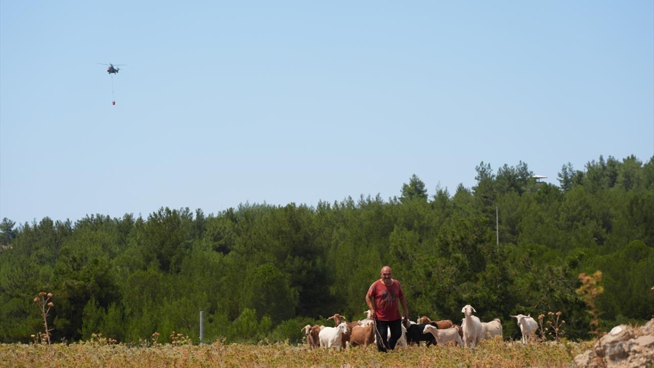Yangın nedeniyle bölgede bulunan arı kovanları ile küçükbaş hayvan ağılları tahliye ediliyor.