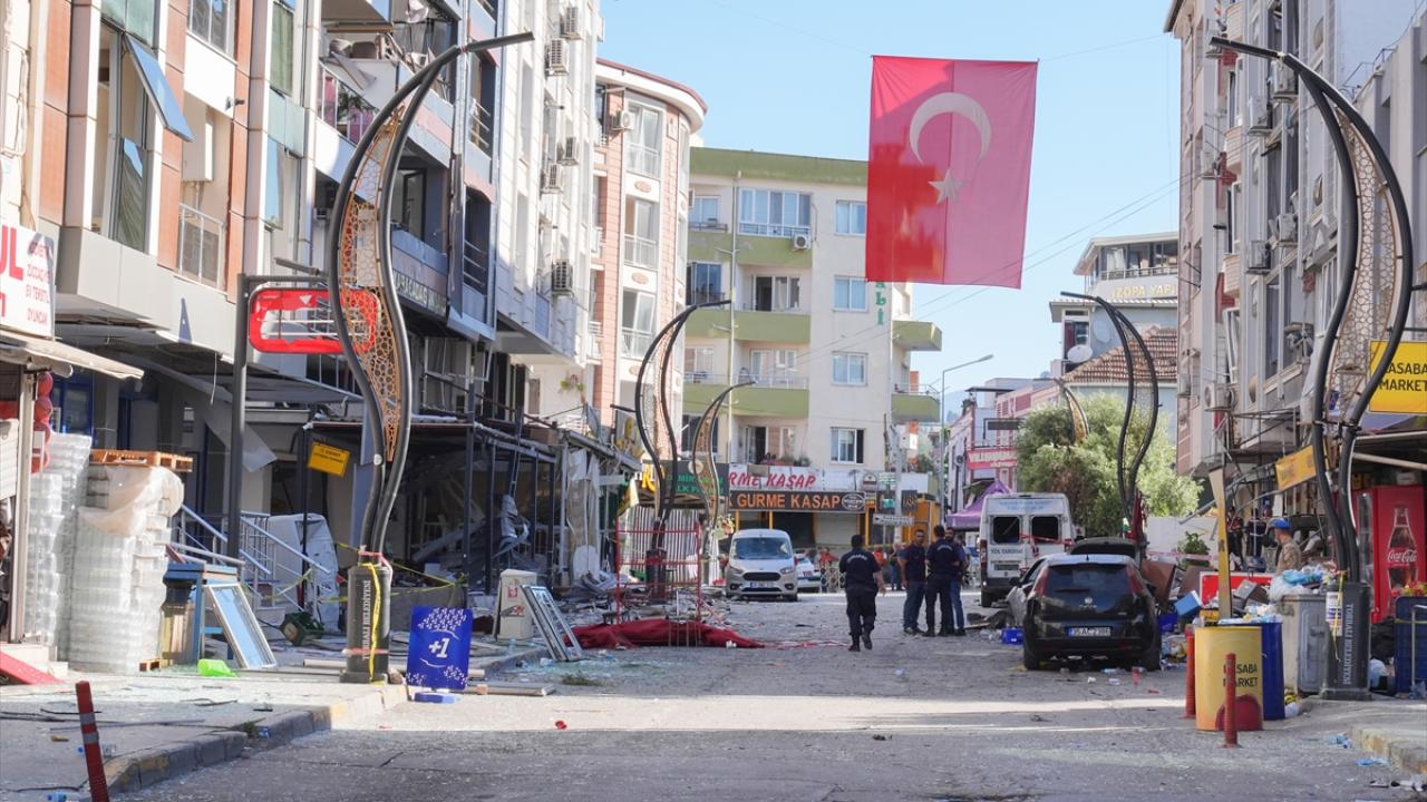 İlçede dün meydana gelen patlamanın olduğu sokakta jandarmanın önlemi devam ediyor. Zarar gören iş yerleri ve evlerin olduğu caddeye giriş kapatılmış durumda.