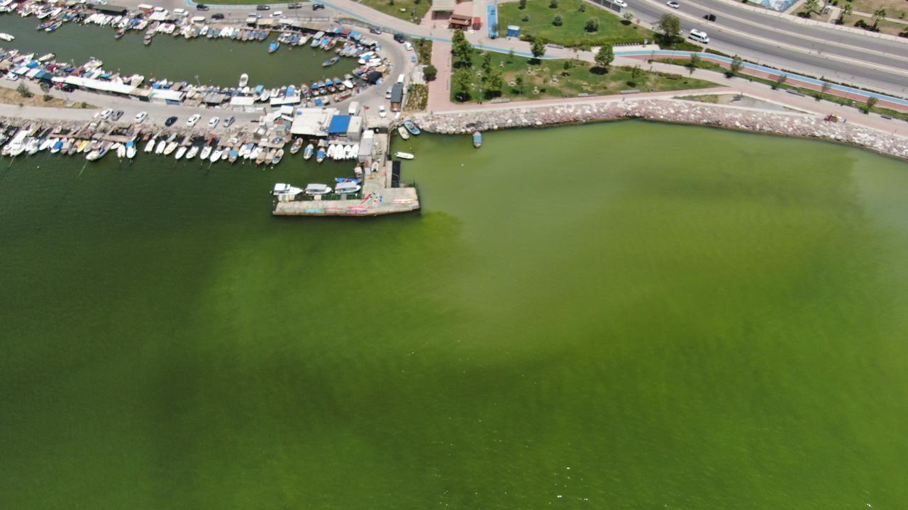 Körfezin Karşıyaka ilçesi Mavişehir balıkçı barınağı önü ile Balçova ilçesi Çakalburnu Dalyanı`nda suyun rengi yeşil ve kahverengiye döndü.