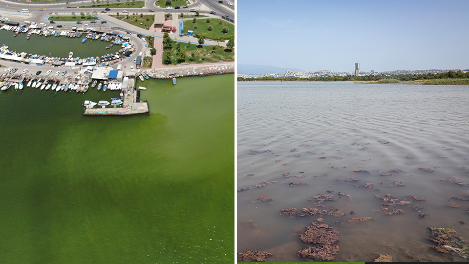 İzmir Körfezi'nde, plankton patlaması nedeniyle denizin rengi değişti. İzmir'in iki farklı ilçesinin birinde deniz yeşile, diğer ilçede ise deniz kahverengiye döndü.