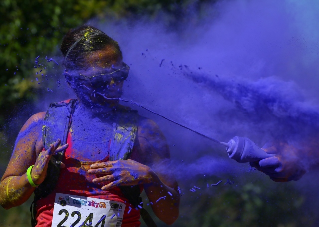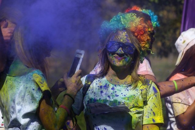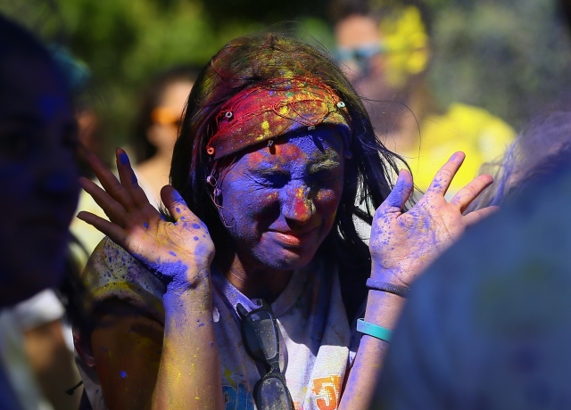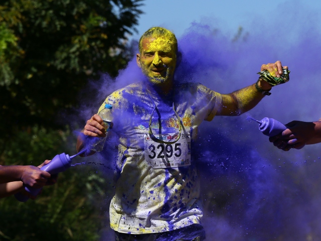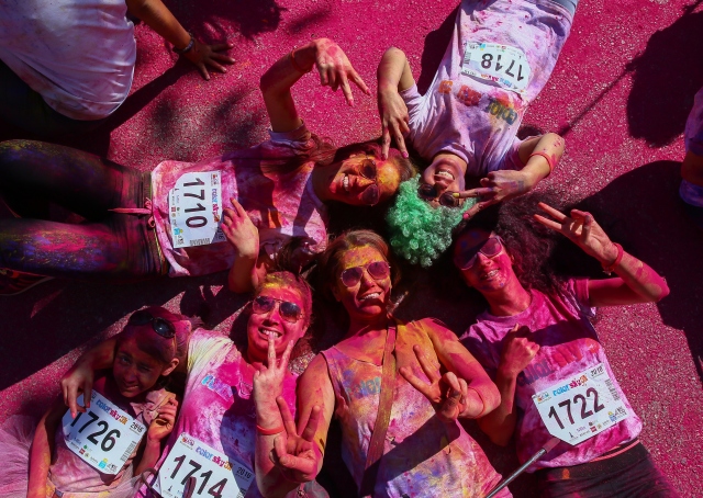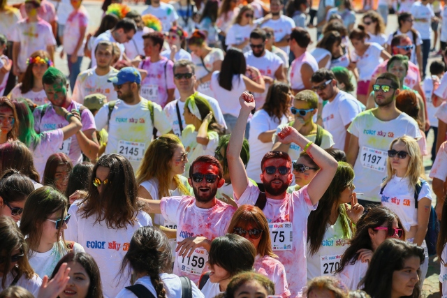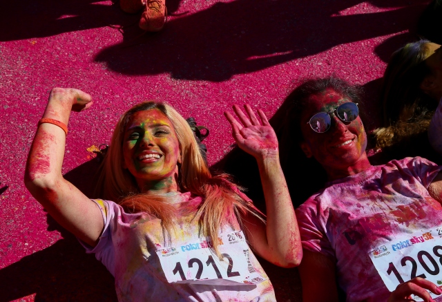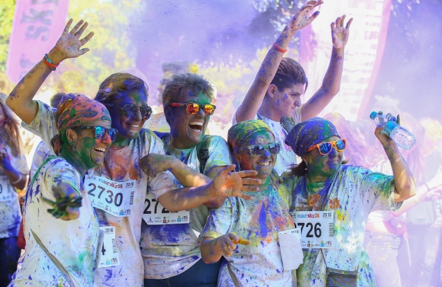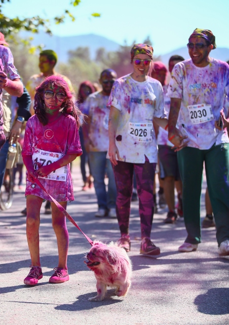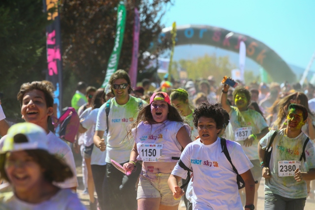 "Renkli koşu" etkinliği İzmir'de çok sayıda kişinin katılımıyla yapıldı. İnciraltı'ndaki Kent Ormanı'nda düzenlenen etkinlikte, parkur boyunca belirlenen noktalarda, her yaştan katılımcıların üzerlerine gıda boyasıyla renklendirilmiş sarı, pembe, mor, yeşil renkte tozlar atıldı.