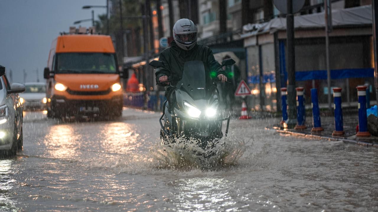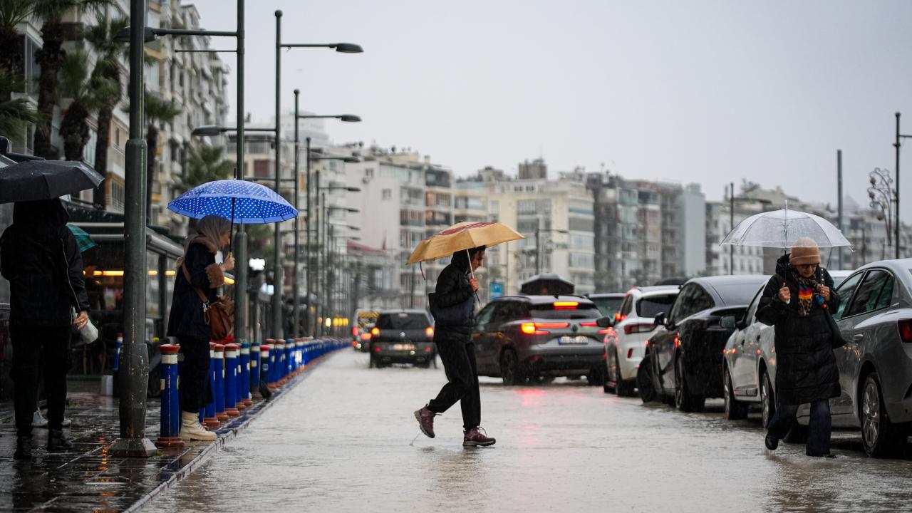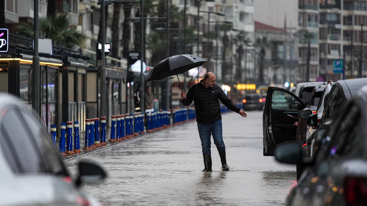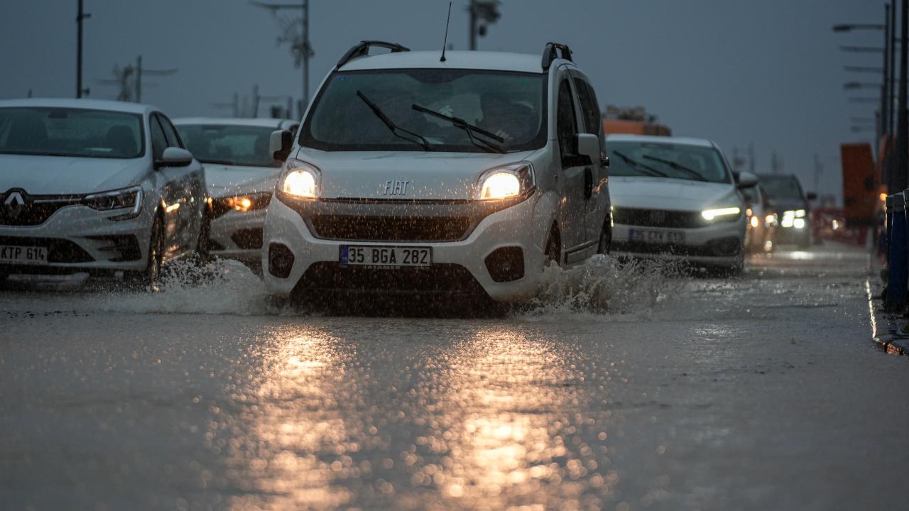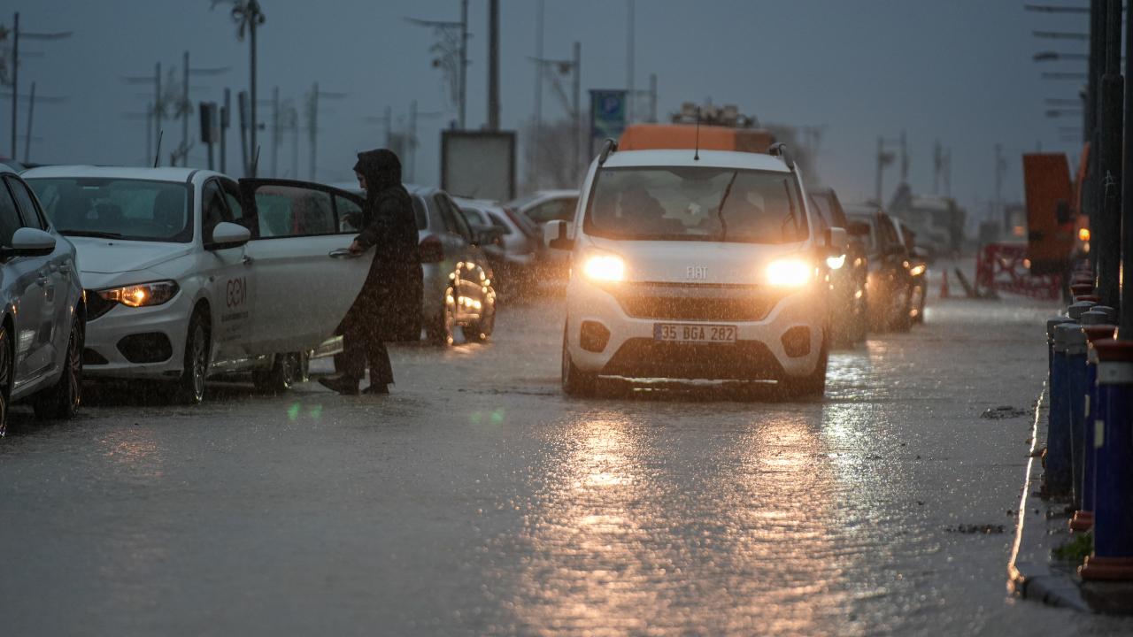 İzmir'de etkili olan sağanak yaşamı olumsuz etkiledi. Bazı caddelerde sağanak nedeniyle su birikintileri oluştu.