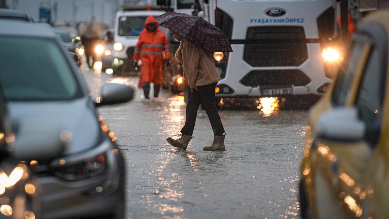 Konak ilçesindeki bazı caddelerde sağanak nedeniyle su birikintileri oluştu.