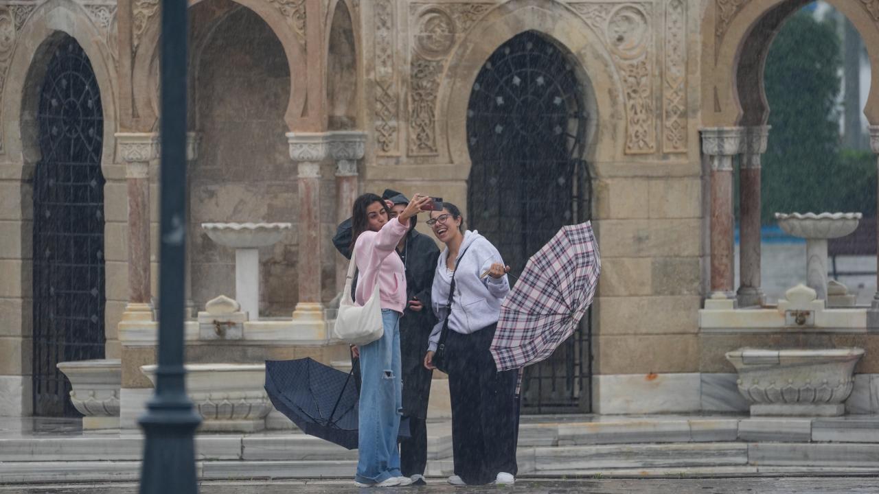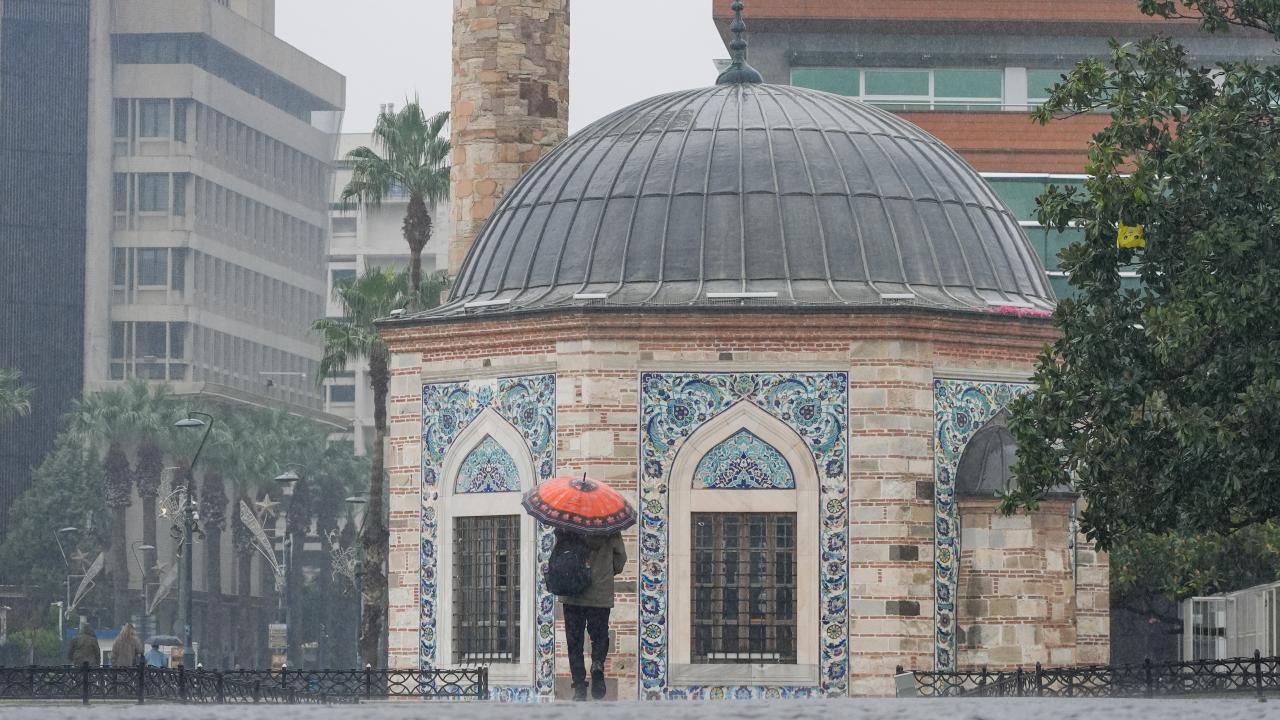 Bazıları da şemsiyeyle yağmurdan korunmaya çalıştı.