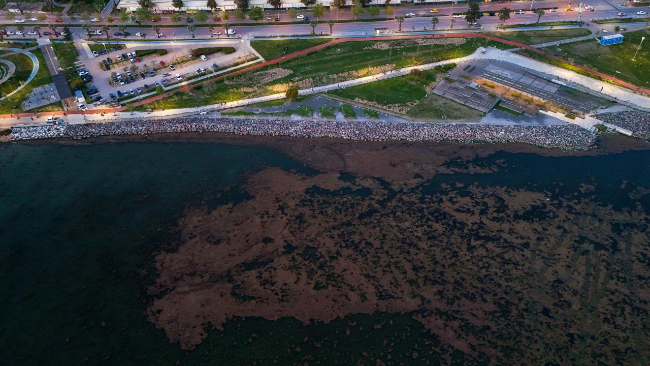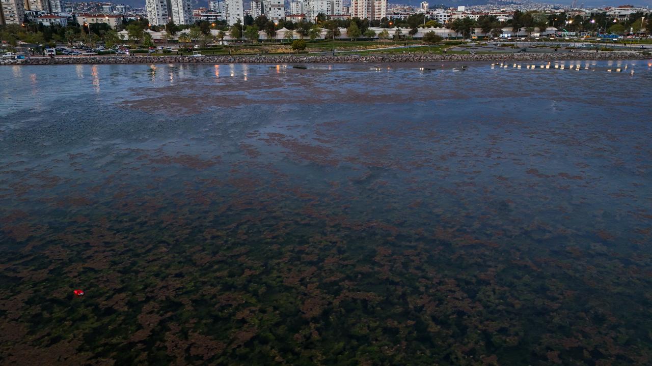 İzmir Körfezi`nde belli dönemlerde gözlemlenen yosun, Bostanlı sahilinin belli kesimlerinde deniz yüzeyinde yeşil örtü oluşturdu. Su üstündeki yosunların çürümesi kirlilik ve kokuya neden olabiliyor.