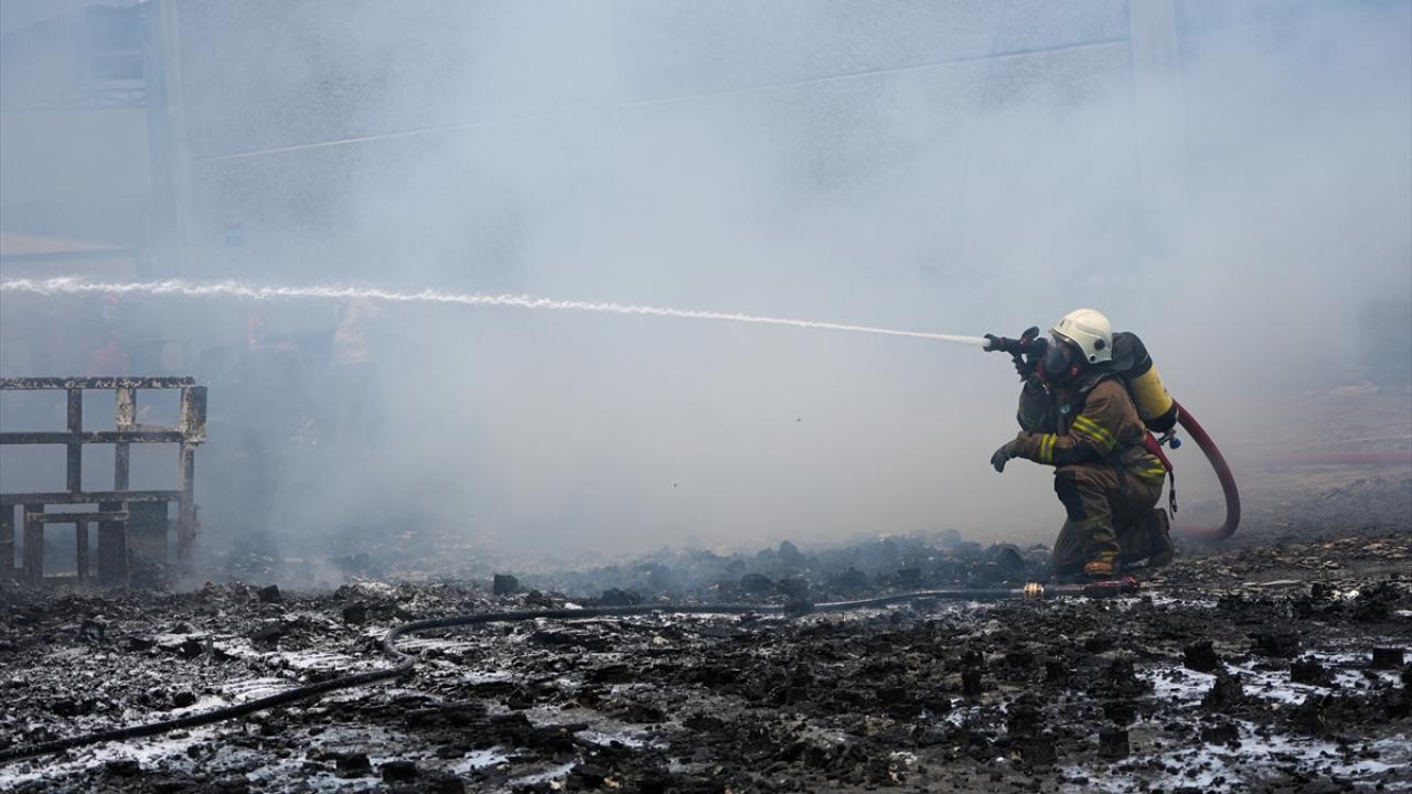 Dökümcüler Sanayi Sitesi`nde, çeşitli işletmelere ait paletlerin toplandığı alanda henüz belirlenemeyen nedenle yangın çıktı.