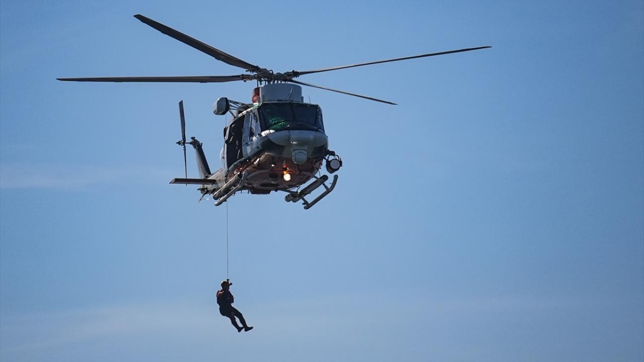 Sahil Güvenlik arama kurtarma helikopteri de bölgedeki arama çalışmalarına destek verdi. Mahsur kalan 1 kişi helikopterden halat yardımıyla inen arama kurtarma personelince helikoptere taşındı. Suyun karşı bölümünde bulunan bir kişi de havai hatla güvenli bölgeye getirildi. Tatbikatta, kurtarılan hayvanlar da bota alınarak İl Tarım ve Orman Müdürlüğü ekiplerine teslim edildi.