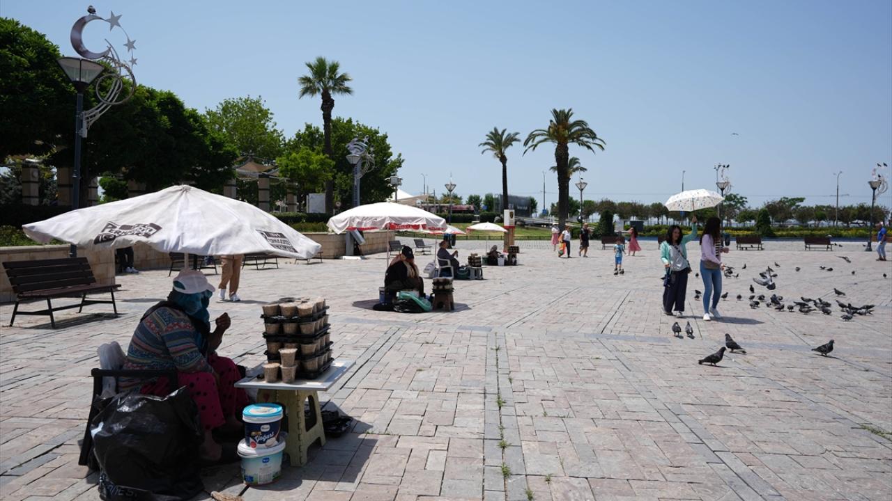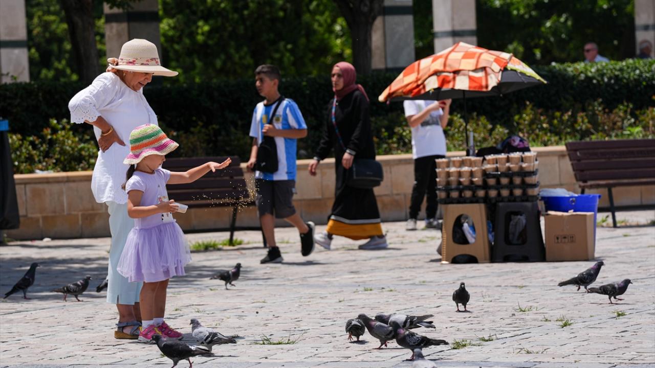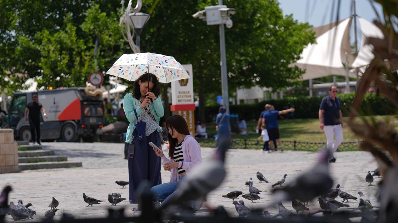 Kentte etkili olan sıcak hava nedeniyle açık alandaki vatandaşlar gölge yerlerde vakit geçirdi. Güneşten korunmak isteyenler şapka taktı, şemsiye kullandı.