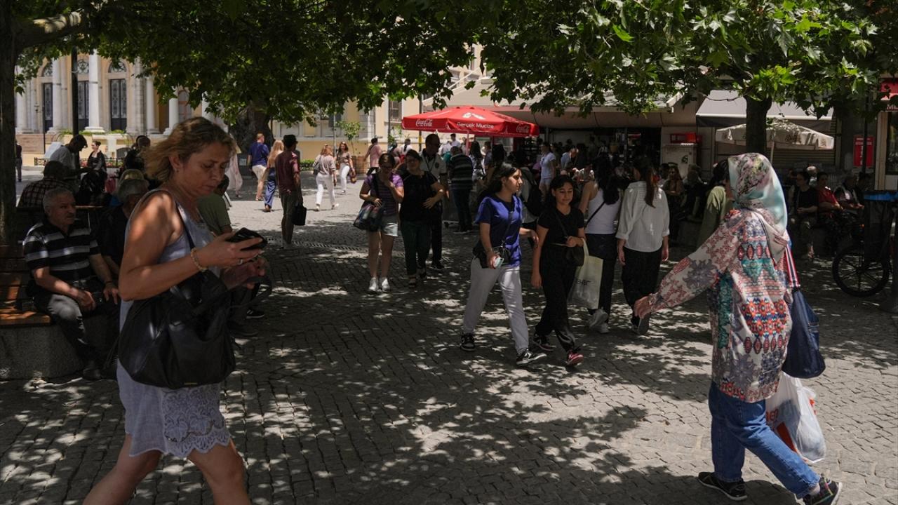 Kentte sıcak hava nedeniyle açık alandaki vatandaşlar gölge yerleri tercih etti.